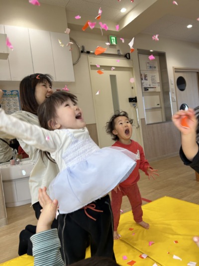 ひらひら落ちてくるスカーフで楽しんでいました!