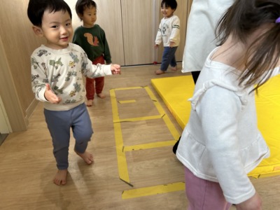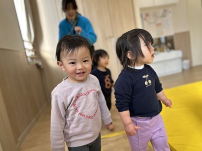 虹組さんでは、そろ〜り歩きや、ちょこちょこ歩き、きょうりゅう歩きなど、色々な歩き方に