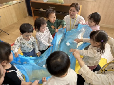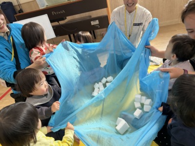 みんなで大判スカーフに雪を集めて、ゆらゆらゆら。