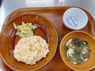 玉ねぎ・人参・ピーマンをみじん切りにし、豚ひき肉と干しエビを加え、醤油と鶏ガラだしでしっかり味付け。具材のうま味を閉じ込めたら、炊きたてご飯に混ぜ込みます。ピーマンの彩りも鮮やかで、子どもたちからは「お肉もエビもおいしい!」の声が上がり、苦手なピーマンも気にせずパクパク完食でした。
