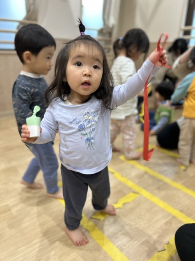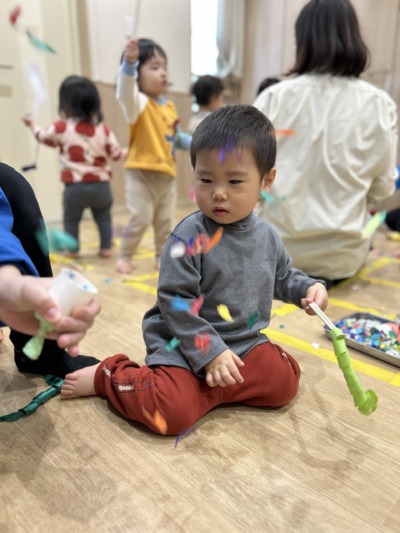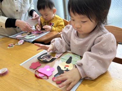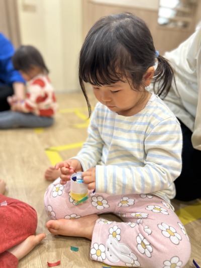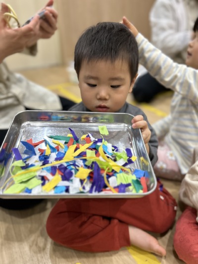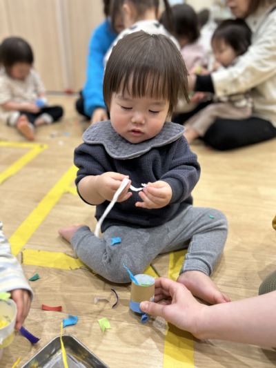 指先を上手に使い、細く長くちぎる子どももいて、成長を感じる瞬間でした。