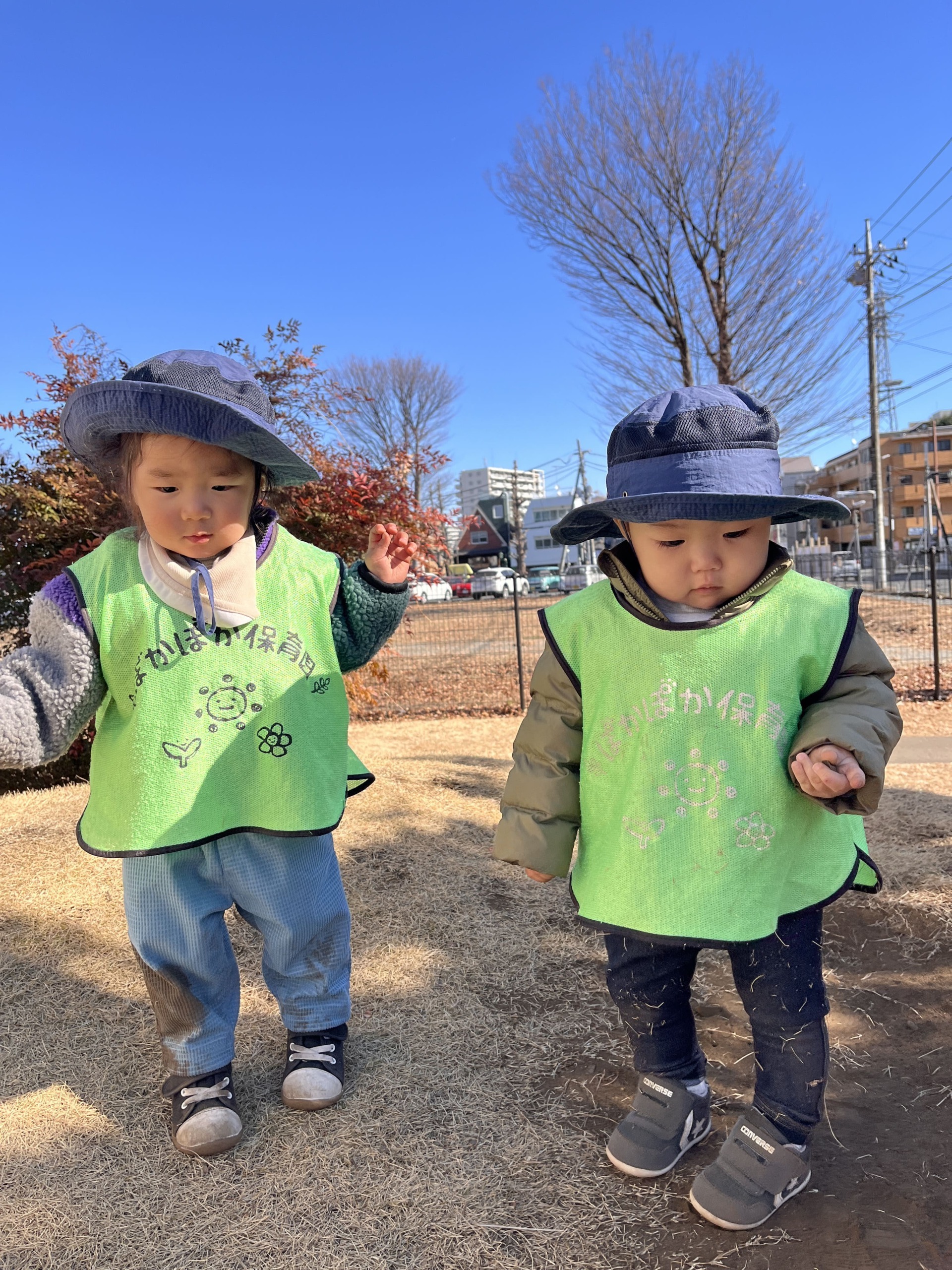 気持ちの切り替えのためにその後はお散歩へ。近くの広場で小さな山に挑戦し、自分の足で中腹まで登ることができました。降りる時もこわがる様子はなく、とことこ歩いて降りようとしていて、見守る私たちがヒヤッとする場面もありました。たくさん体を動かして遊ぶうちに、鬼のことはすっかり忘れてくれたかもしれません。