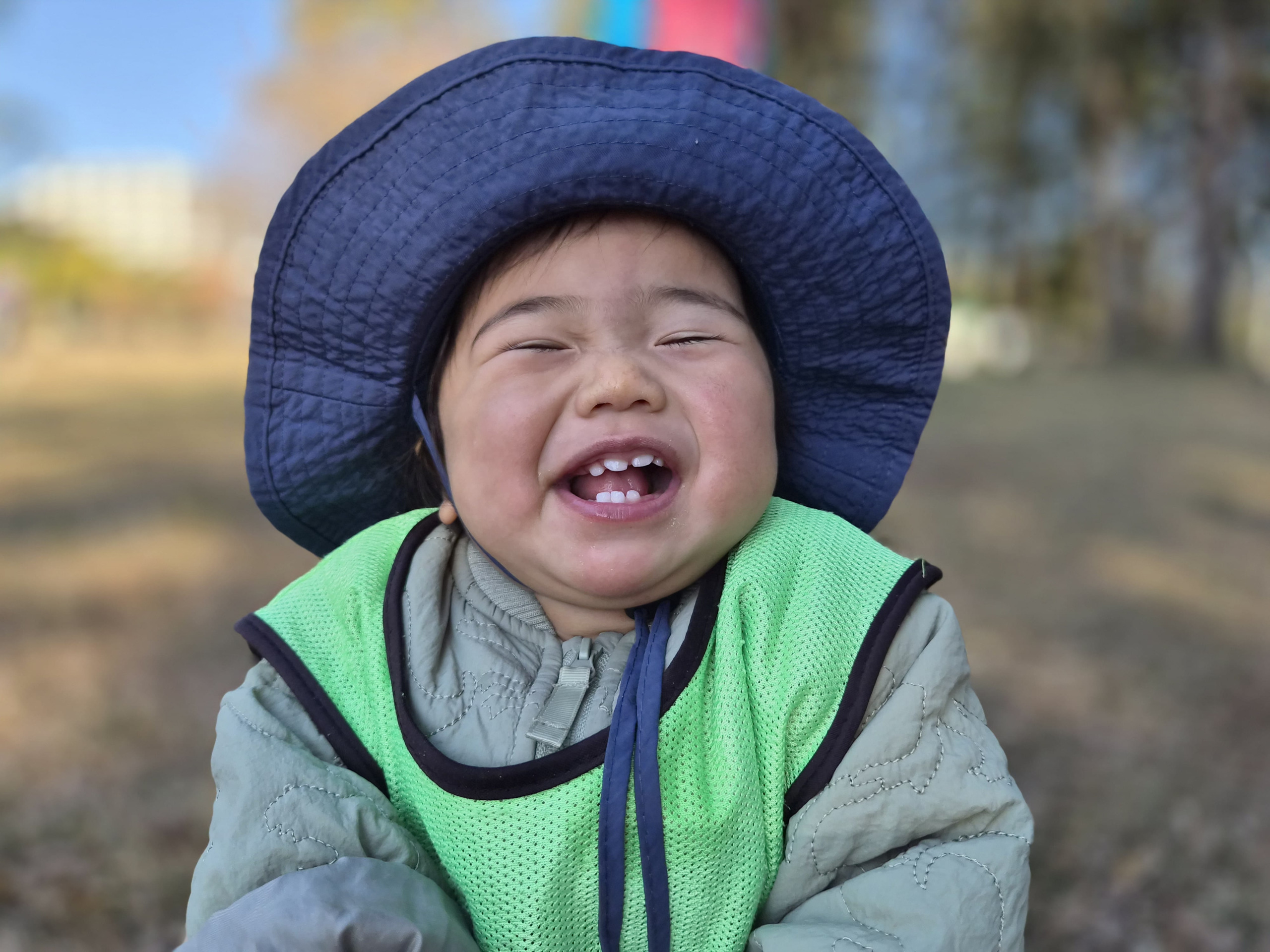 その後は第一公園へ。すれ違う方々にもにっこり笑顔でご挨拶ができて、「可愛い~」と声をかけていただくこともあり、ほっこりしました。公園では、ずりずりと探索を始め、葉っぱをちぎったり、花びらをつまんだり、枝を見つけたりと、興味の幅がぐっと広がっています。動きの範囲が日々広がっていて、歩けるようになる日がますます楽しみですね。歩き始めたらスピード感のある探索になりそうで、また新しい発見が増えそうです。