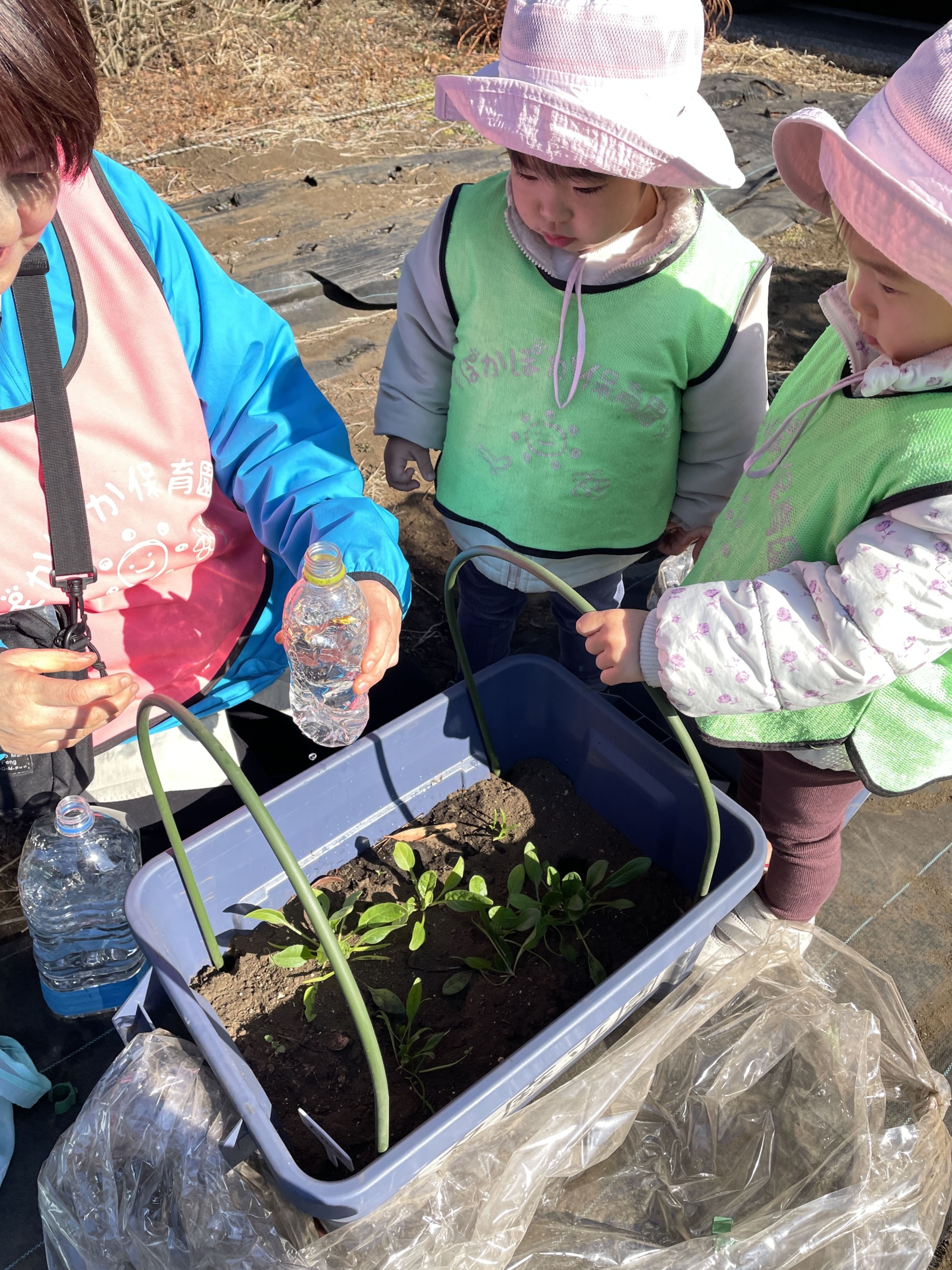 今日は畑でほうれん草にお水をあげてから、公園へ向かいました。畑では、毎回のお世話がすっかり習慣になってきていて、丁寧にお水をあげる姿が頼もしいです。