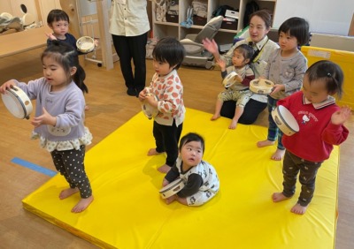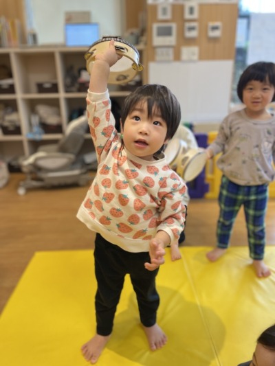 音楽をよーく聞いて、リズミカルに鳴らすことができましたね。