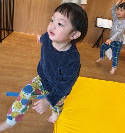 まずはお散歩リトミックで、身体を温めますよ。