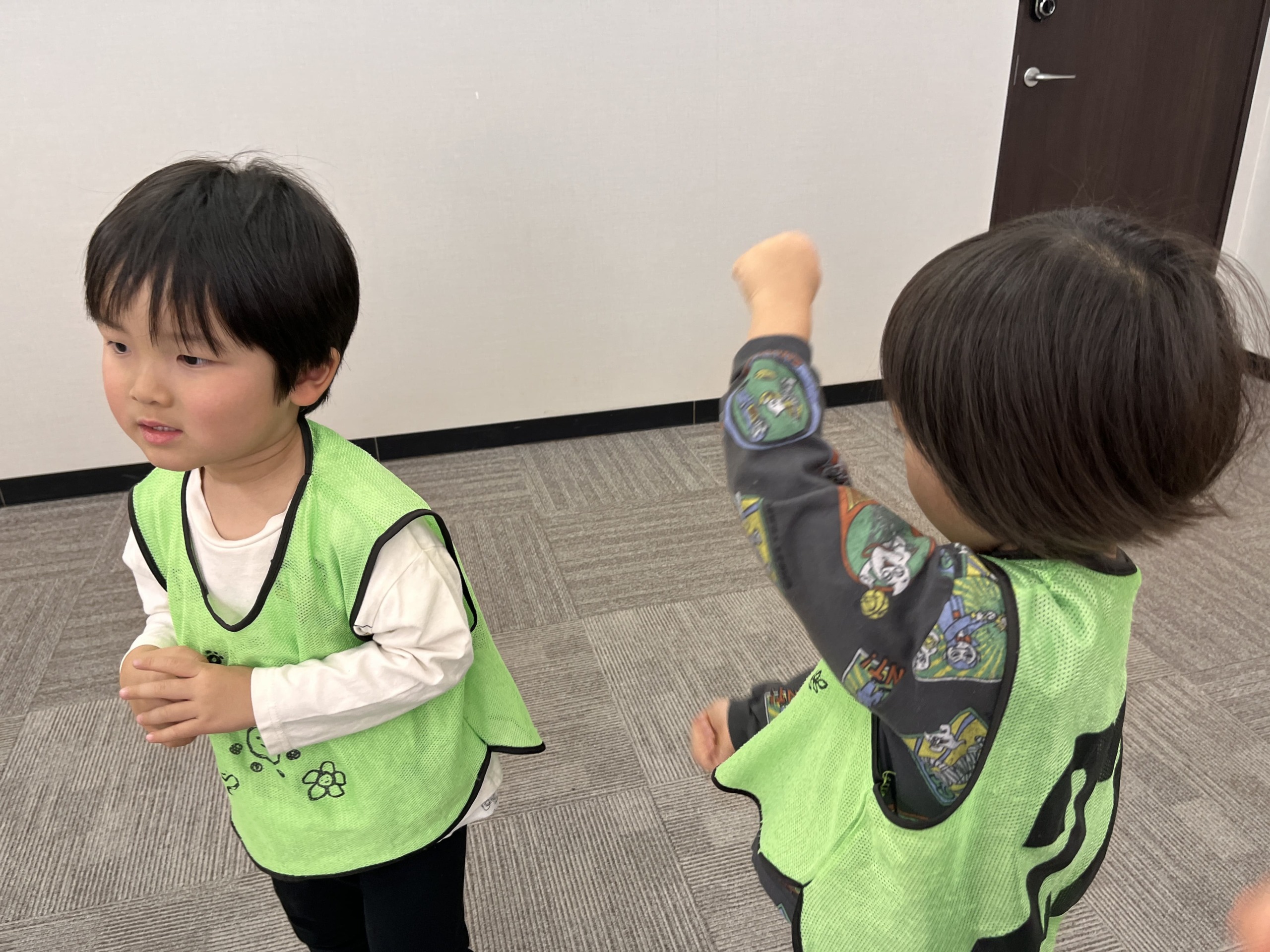 虹組さんは、ダンスの日でした♬始める前の行進は、前のお友だちを追い越さず、まっすぐに歩くことを意識して取り組みました。自分で「ぶつからなかったよ」とうれしそうに教えてくれる姿から、出来た手ごたえが伝わってきます。
