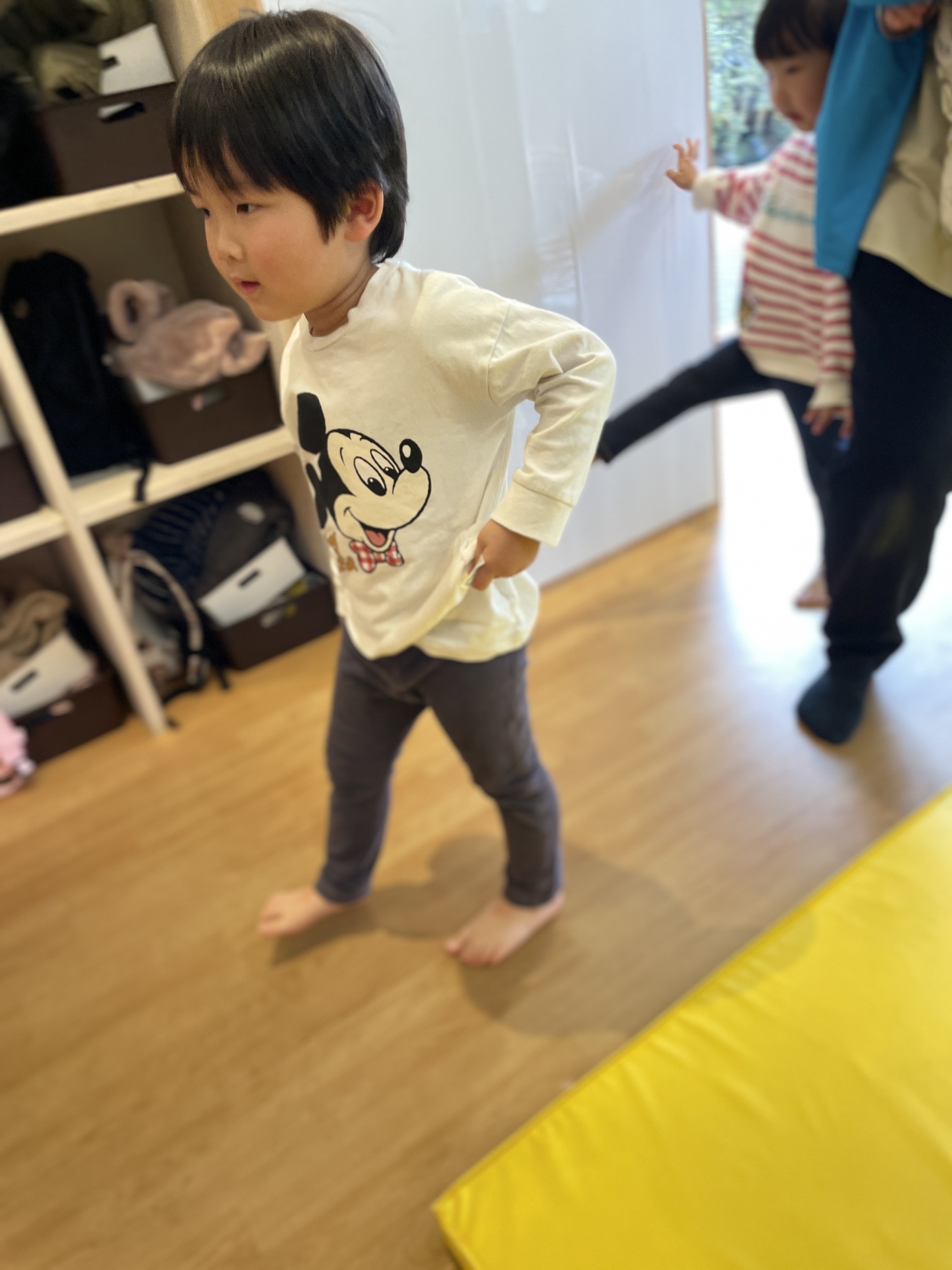 お散歩リトミックは、ピアノにテンポをしっかり合わせて歩く事が上達してきました♪