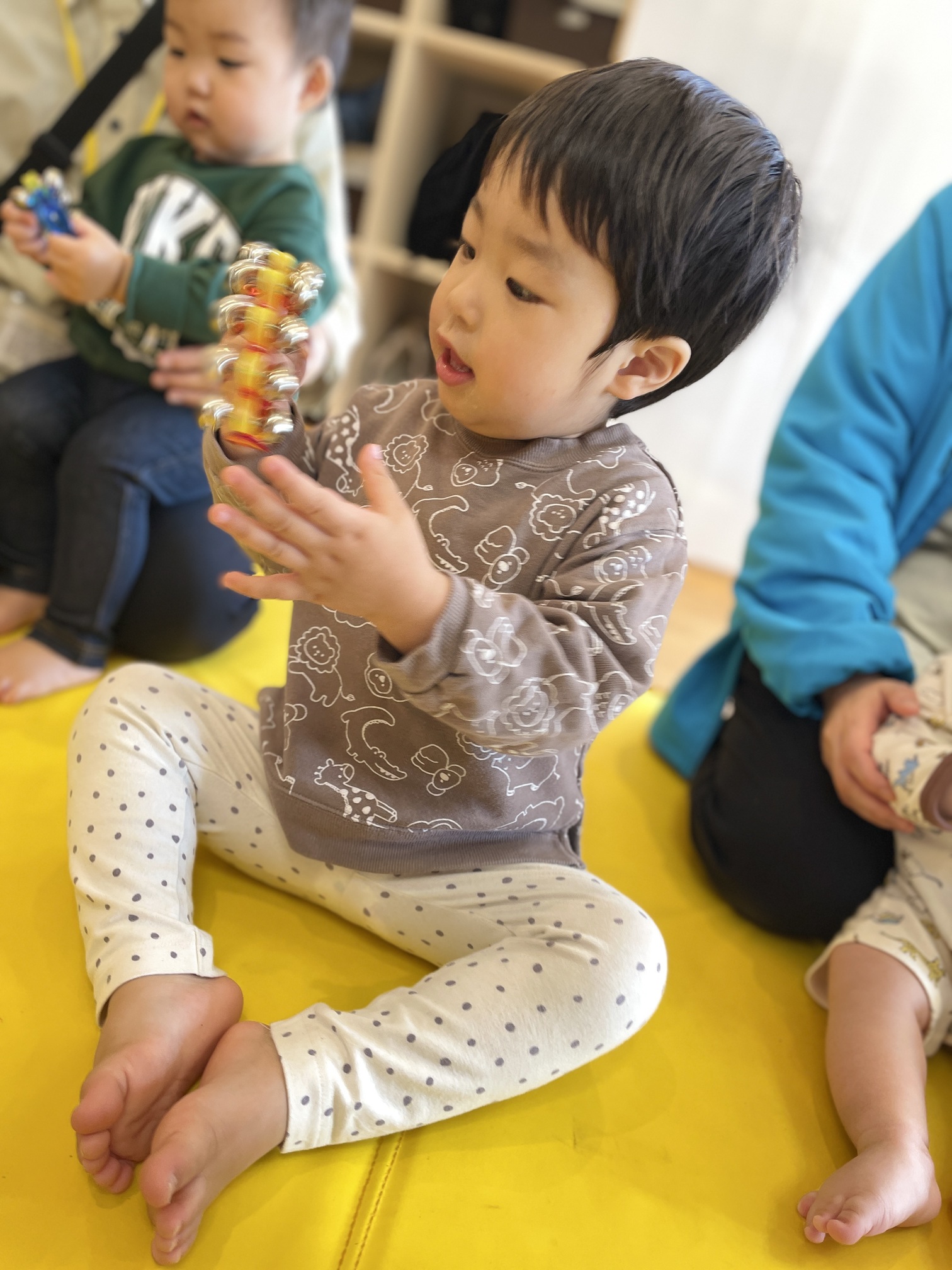 自分の持っている色が出てきたら、高く鳴らすという講師の話を理解し、何色だよーっ思い切り鳴らしてくれました♪