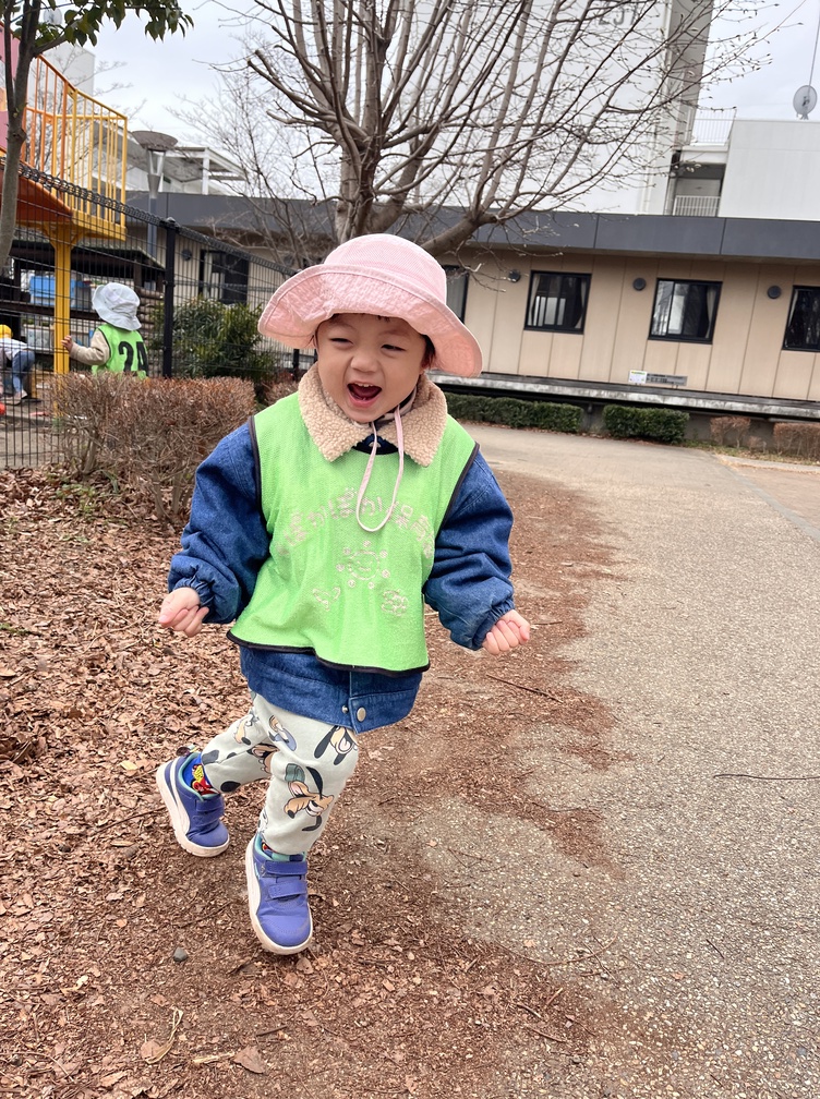 遊んでいる途中、お友だちが遠くへ走っていくのに気づくと「行っちゃった!」と知らせてくれ、「追いかけるから待っててね」と伝えると「お願いしますっ!!!」と、まるで先生のような頼もしいお返事。思わず笑顔になりました。