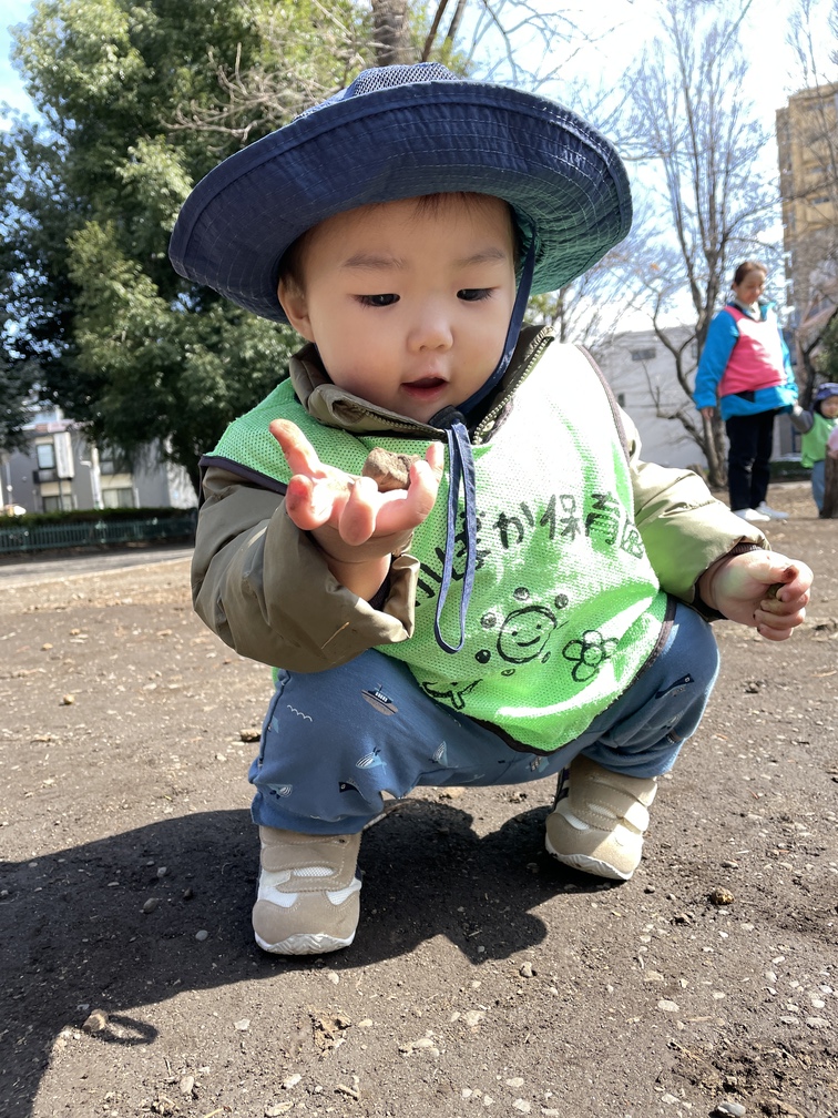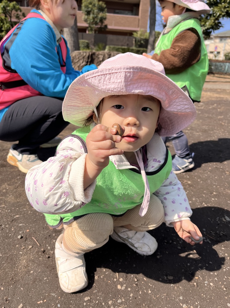 公園では、木陰でひょっこり「ここだよ~」と笑って見せてくれたり、どんぐり探しに夢中になったりと、のびのび遊びました。