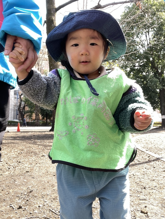 途中の小学校前では元気な声に引き寄せられつつも、「もうすぐ公園だよ」の声かけで気持ちを公園に向けて切り替え、一緒に「公園!」と唱えながら足取り軽く向かいました。