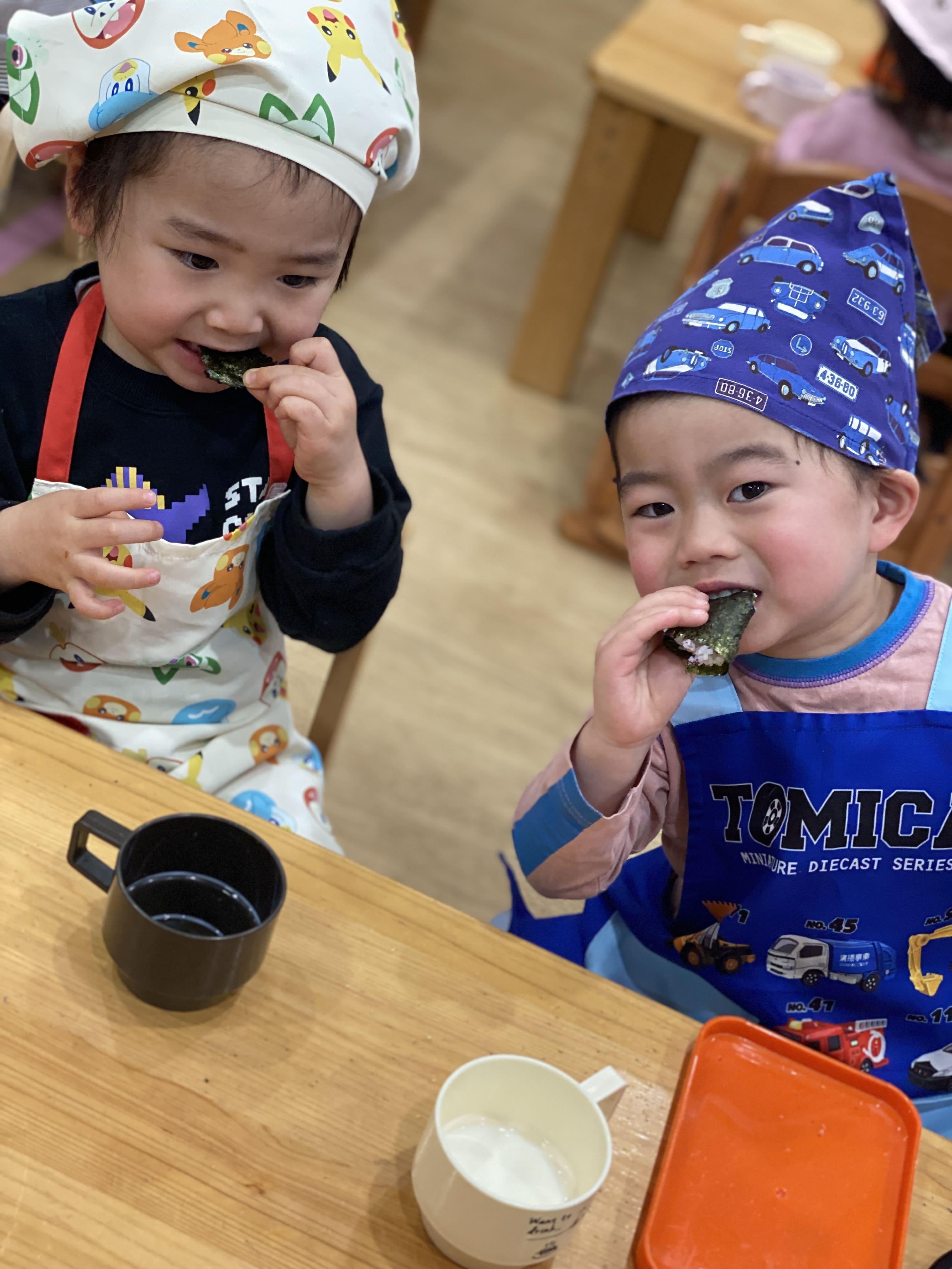 節分にちなみ、縁起物のいわしを使用。砂糖・みりん・醤油で作った甘いタレに漬け込み、骨までやわらかく煮上げて臭みをしっかり抜きました。柔らかな身とほのかな甘辛さに「おいしい!」と驚く子どもが続出。骨を気にせずパクパク完食し、予想外の人気ぶりでした。