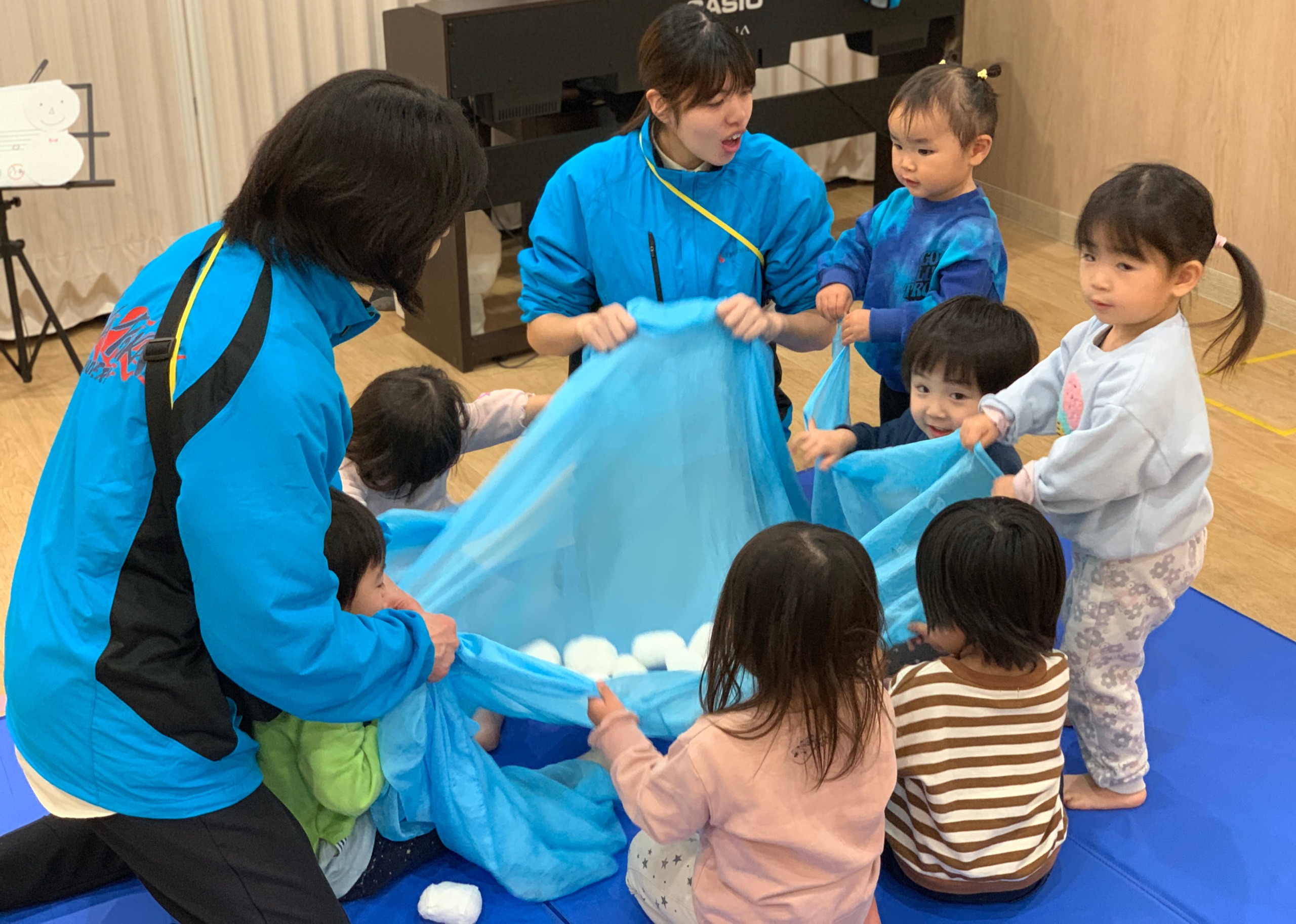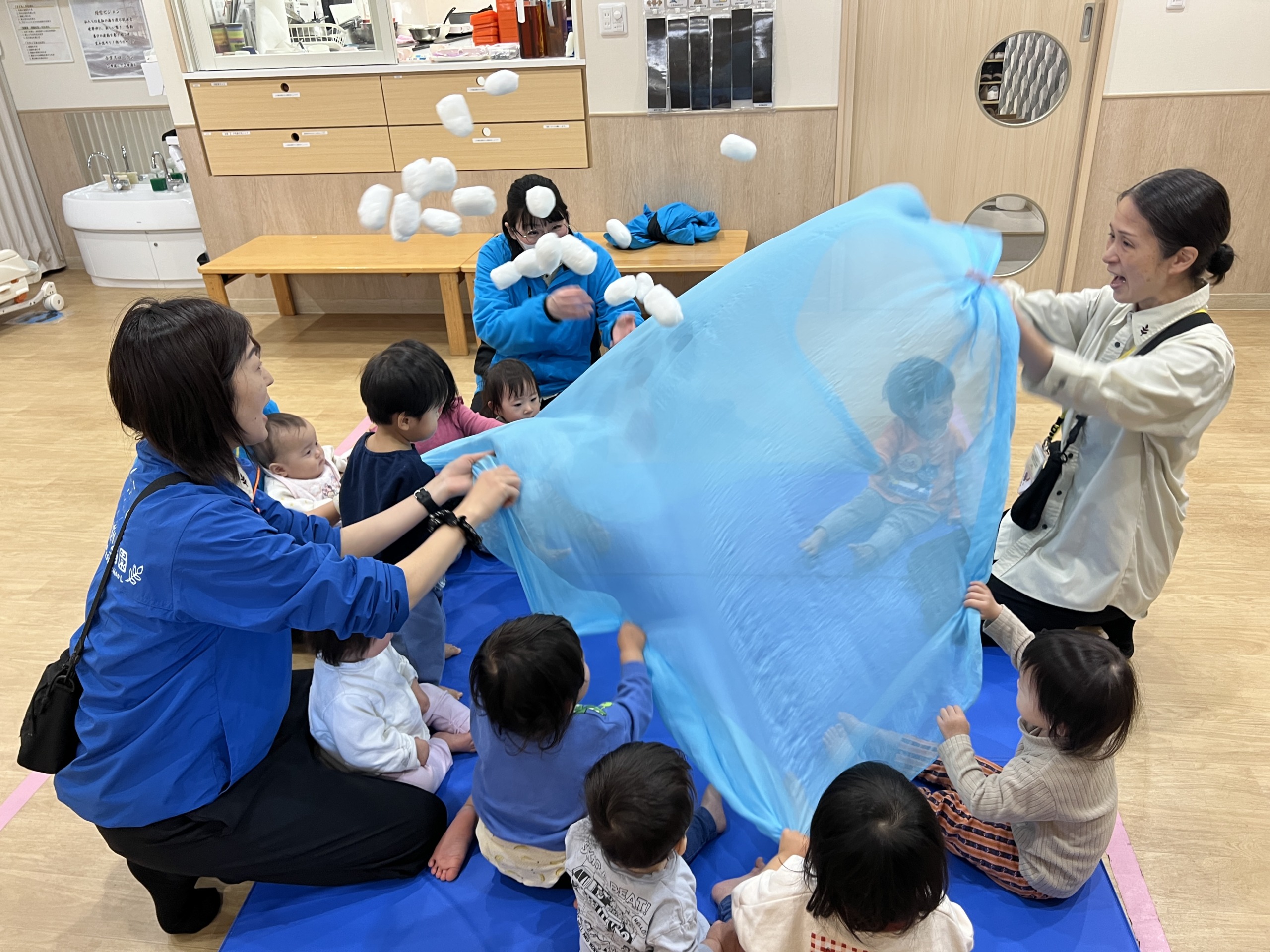 雪の歌に合わせてそーっと揺らし、息を合わせてそれー!!