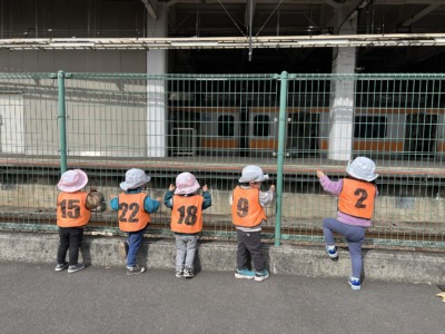 「ガタンゴトン」という音や、目の前を走り去る電車の迫力に、子どもたちは目を輝かせ、夢中になって見入っていました。