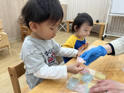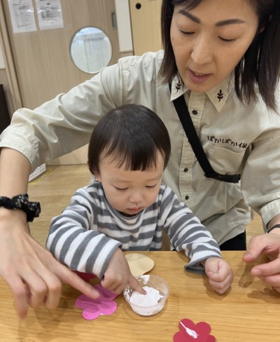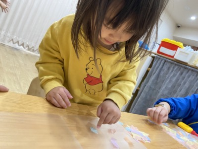 ・指スタンプ、のりなど、五感を楽しむ
