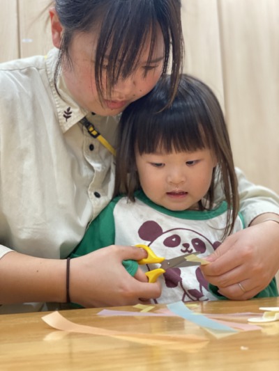2歳児さんははさみにも挑戦です☆