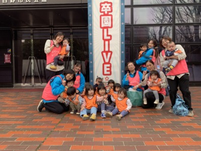 今日は、子ども園の5歳児さんたちの「卒園ライブ」に、私たちぽかぽか保育園の子どもたちも参加させていただきました!