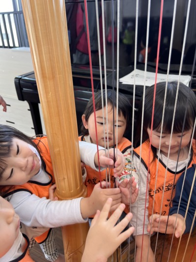 そして、音楽遊びの最後には、なんとハープに少し触らせてもらうことができました!