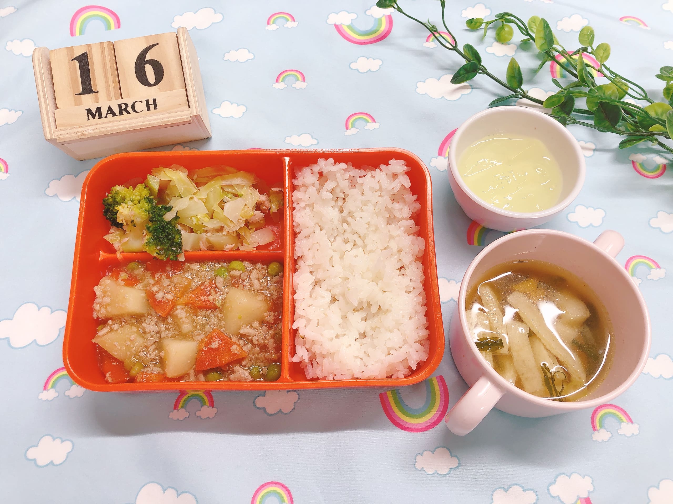 YouTube保育園チャンネルでは給食の調理シーンや食育のポイント動画も配信中!それでは3月16日(月)のメニューをご紹介します。