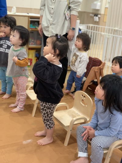 虹組さん(2歳児クラス)は、新年度初日から元気いっぱいです!