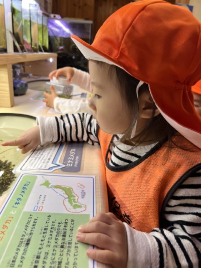 ここでは、珍しいお魚を鑑賞したり、虫や鳥の標本を間近に見たりして、一つひとつの展示に「わぁ!」と歓声をあげていました!