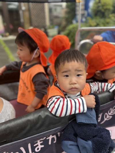 一方、虹組さん(2歳児クラス)は、今日は特別にバスに乗って少し遠くへお出かけです!