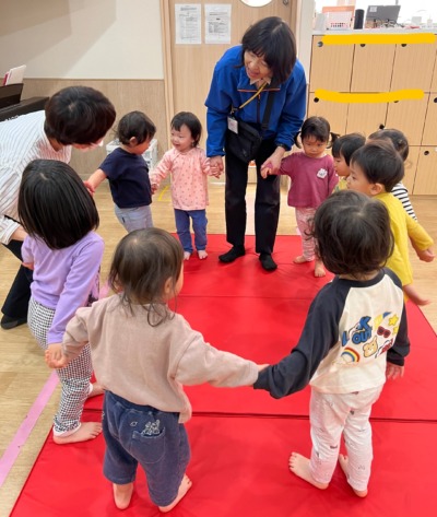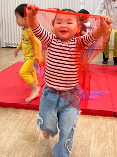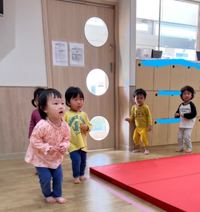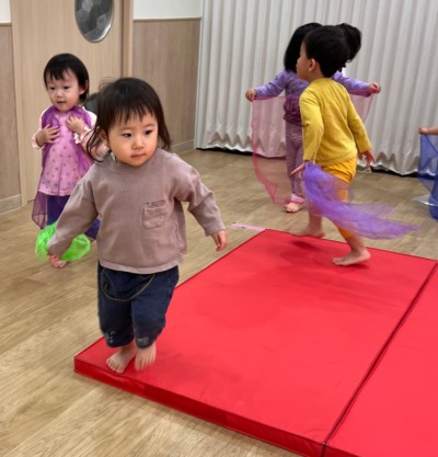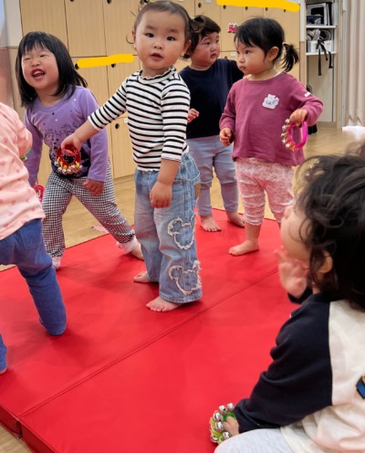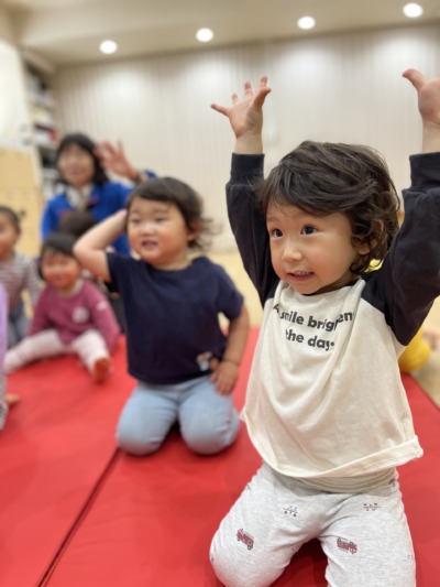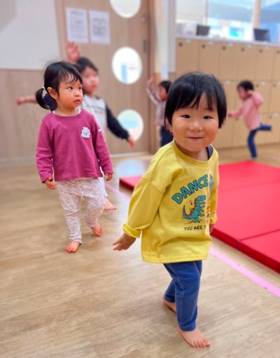 元気いっぱいにお散歩リトミックから。