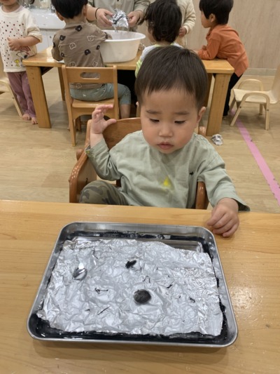 今日一日を通して、子どもたちは感触遊びで五感を刺激し、サイエンス遊びで驚きと発見に満ちた科学的思考の第一歩を踏み出すことができました!