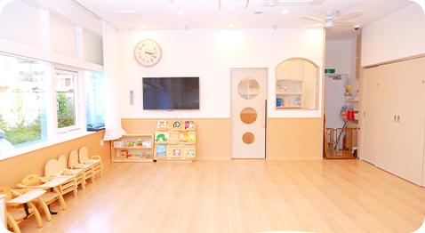 子どもたちの安全をしっかり守ります大きな窓から太陽の光が差し込む、ぬくもりにあふれた空間でありながら、セキュリティカメラ・電子錠を設置し安全対策も万全です。