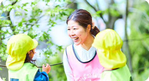 園長から皆さまへのメッセージ自身も9人の子育て中の園長が、「働く保護者の皆さまの身近なサポーターでありたい」という思いで立ち上げ、理想の保育を目指し続けています。