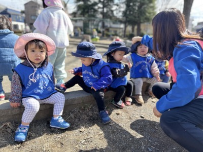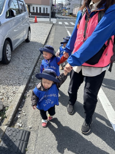 0歳児青空組さん、1歳児虹組さんはそれぞれお散歩に出かけました。