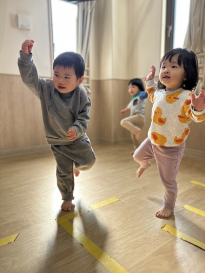 保育室にもやわらかな日差しが入り、子どもたちは元気いっぱいで一日がスタートしました。