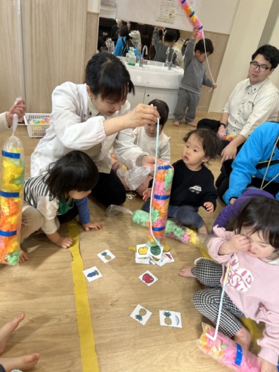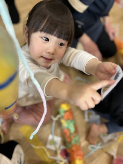 指先を使うこうした遊びは、乳児保育にとても大切な活動です。