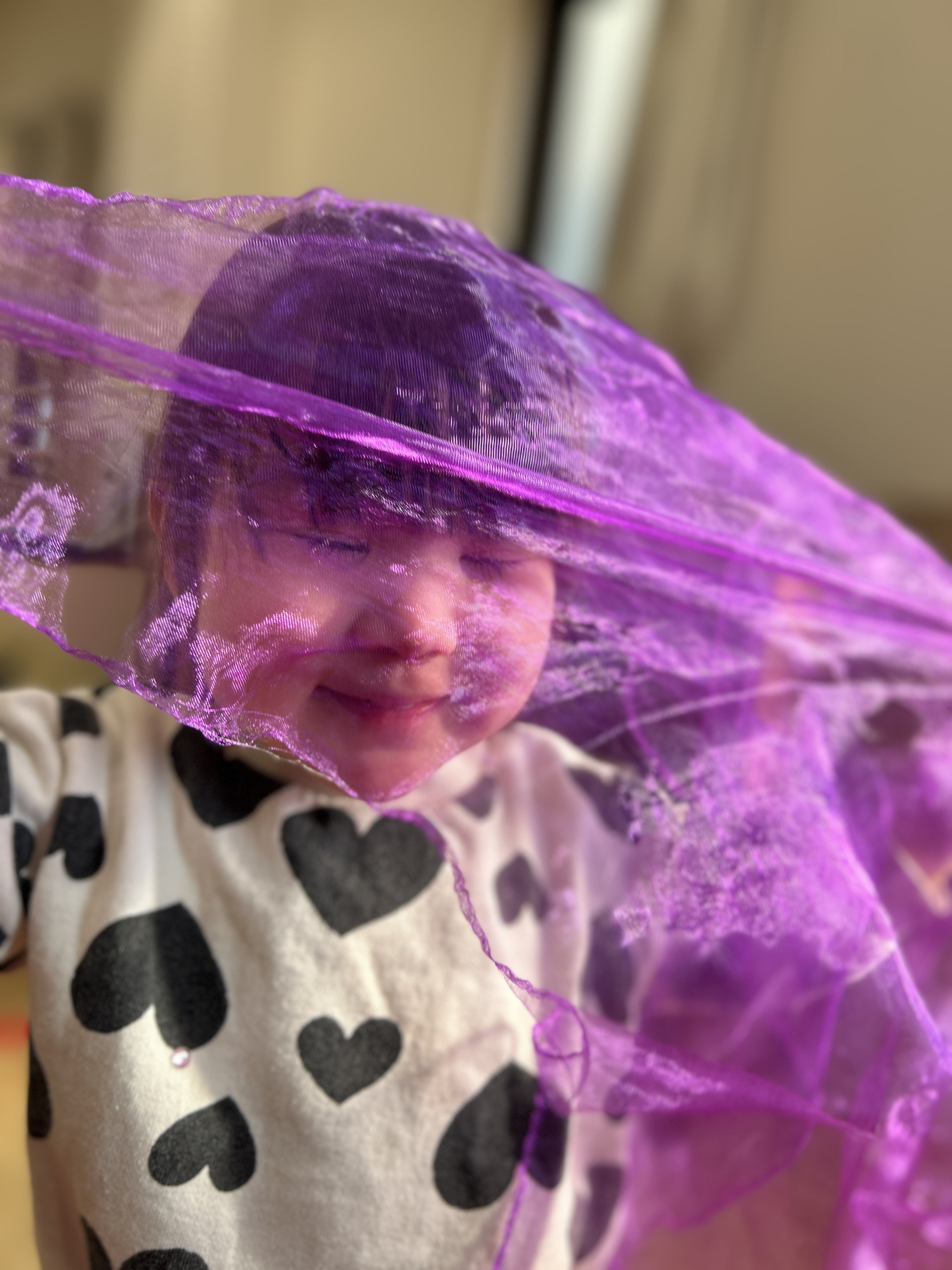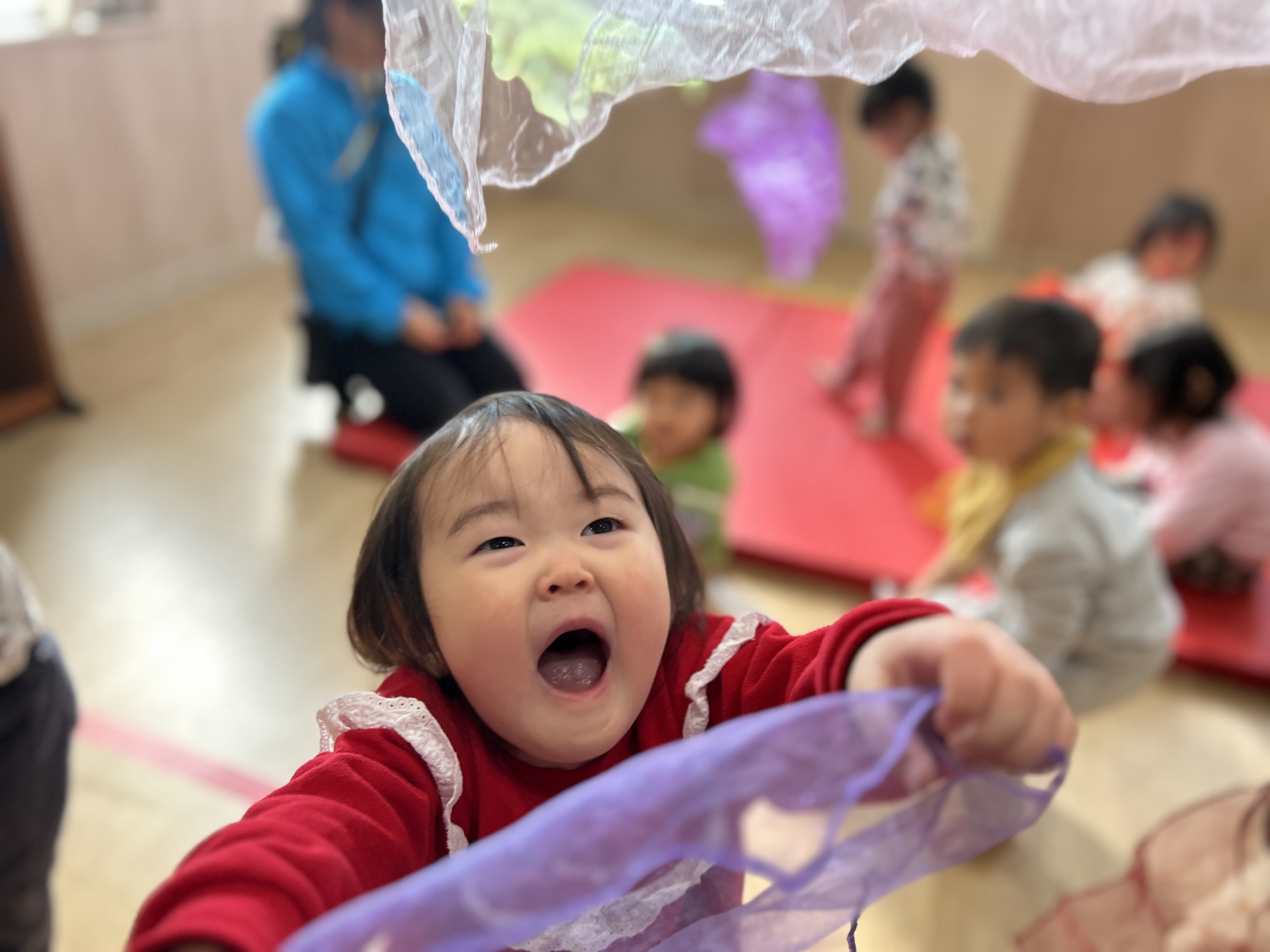とスカーフ遊びでは、0歳児さんも安心した表情で参加していました。
