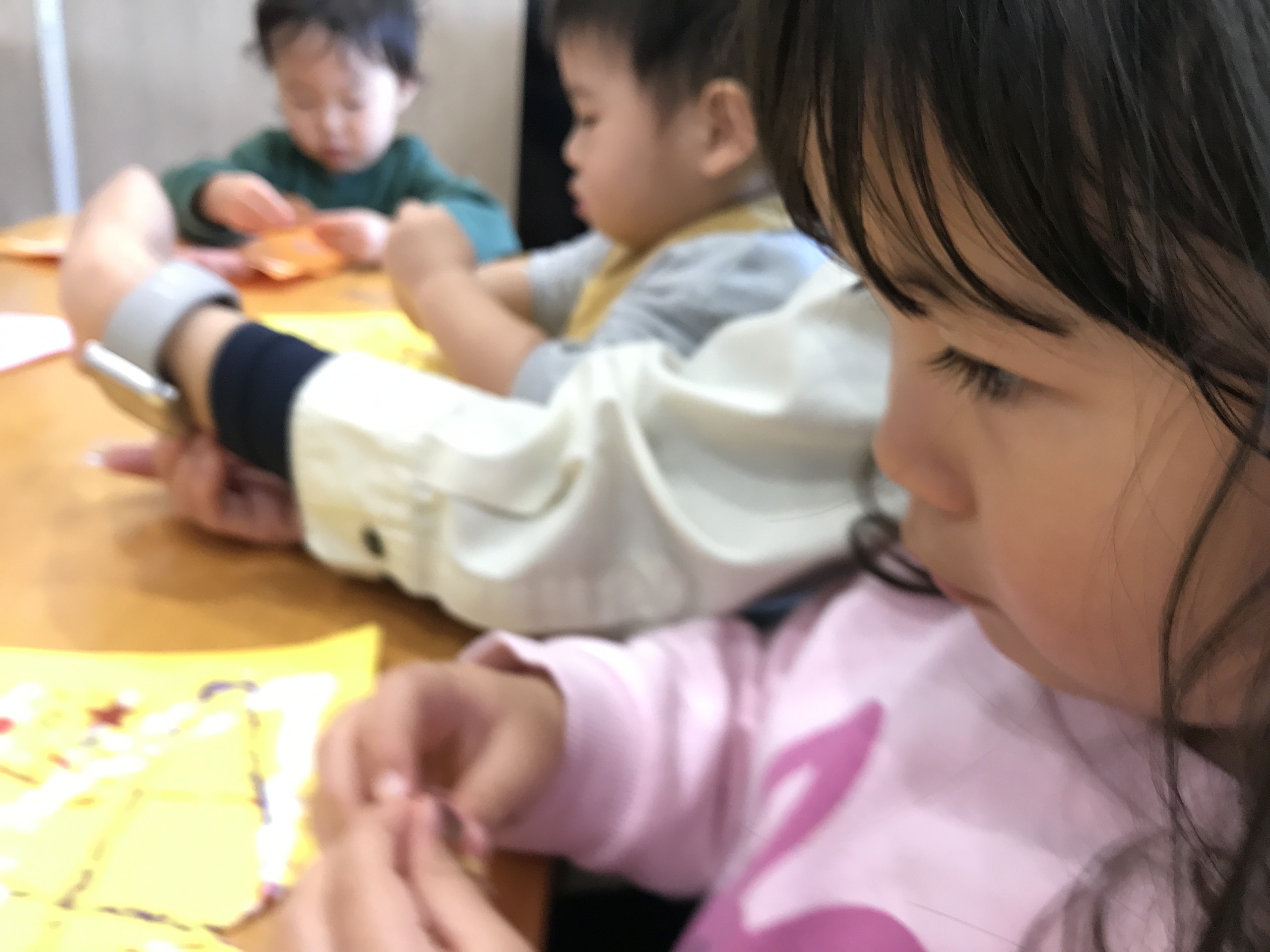 と自分でシールを剥がして貼る姿に、指先の成長を感じました。集中して取り組む姿もとても頼もしくなってきました。