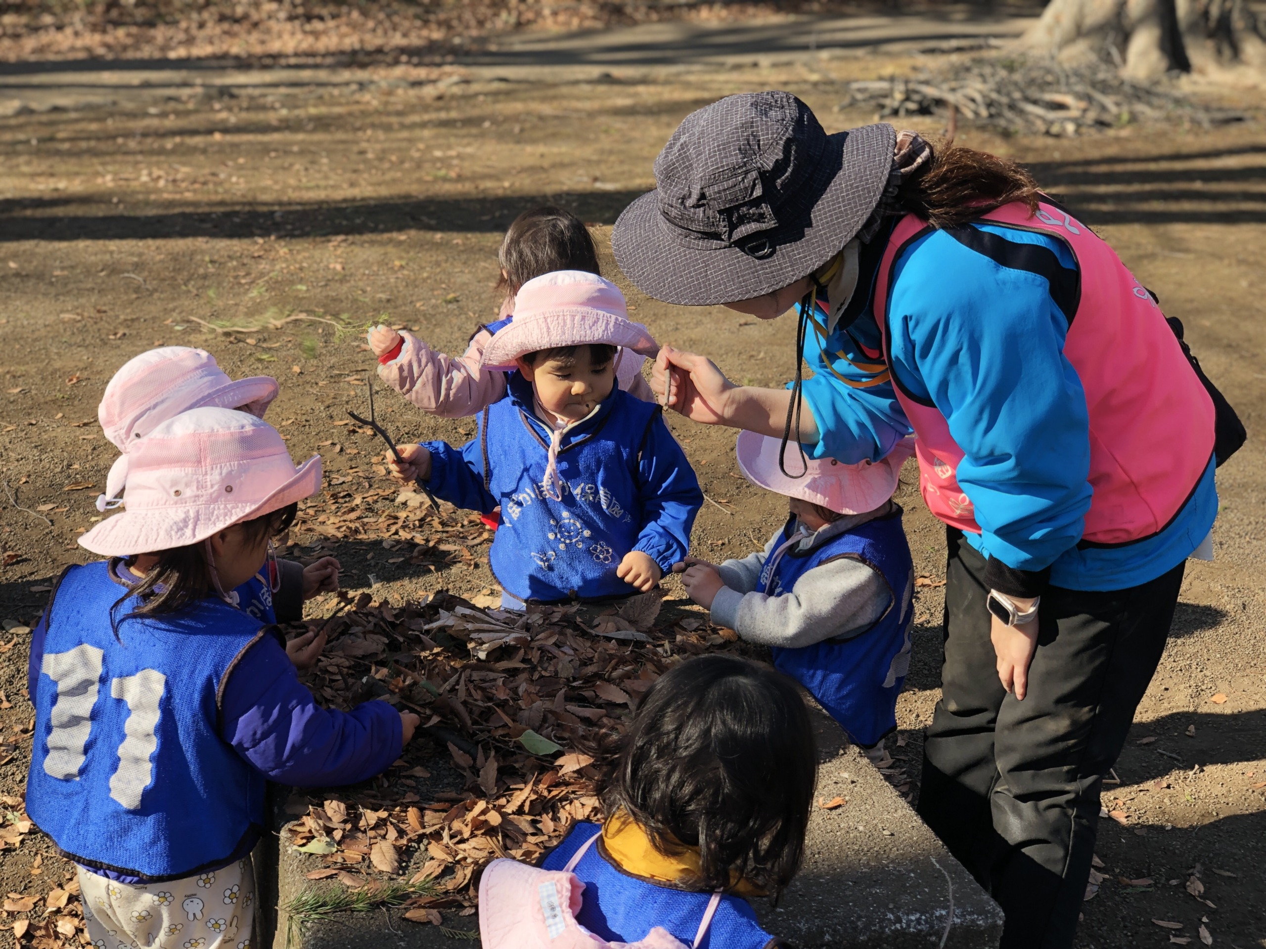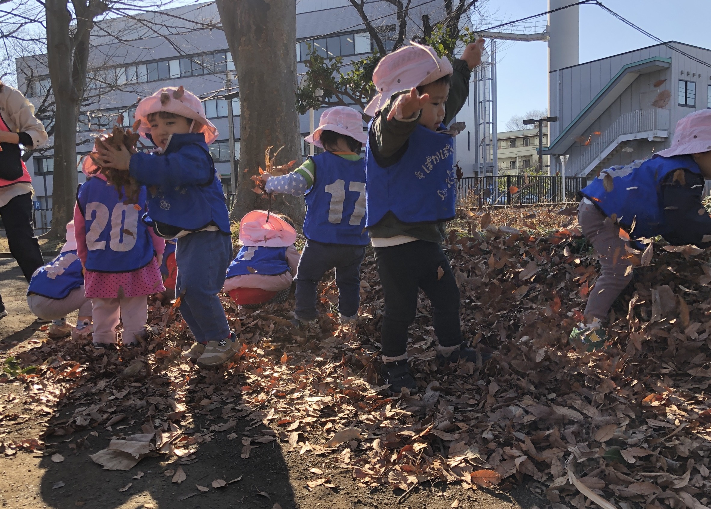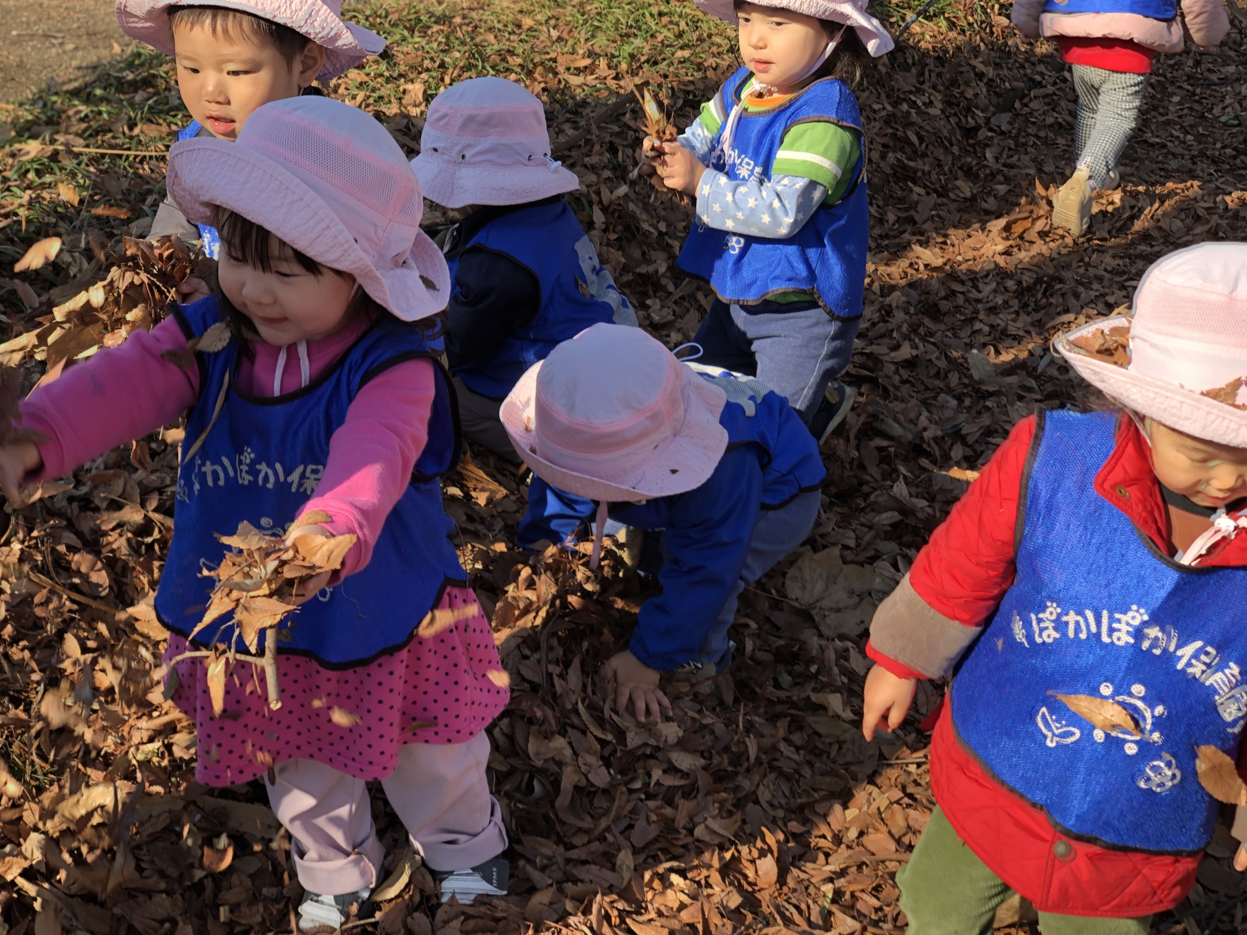 落ち葉遊びをする子もいました。