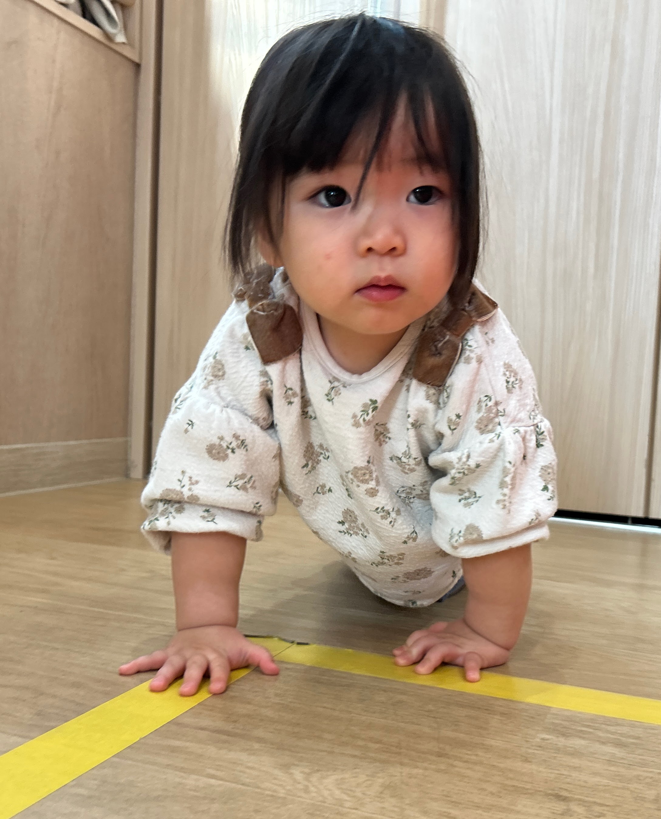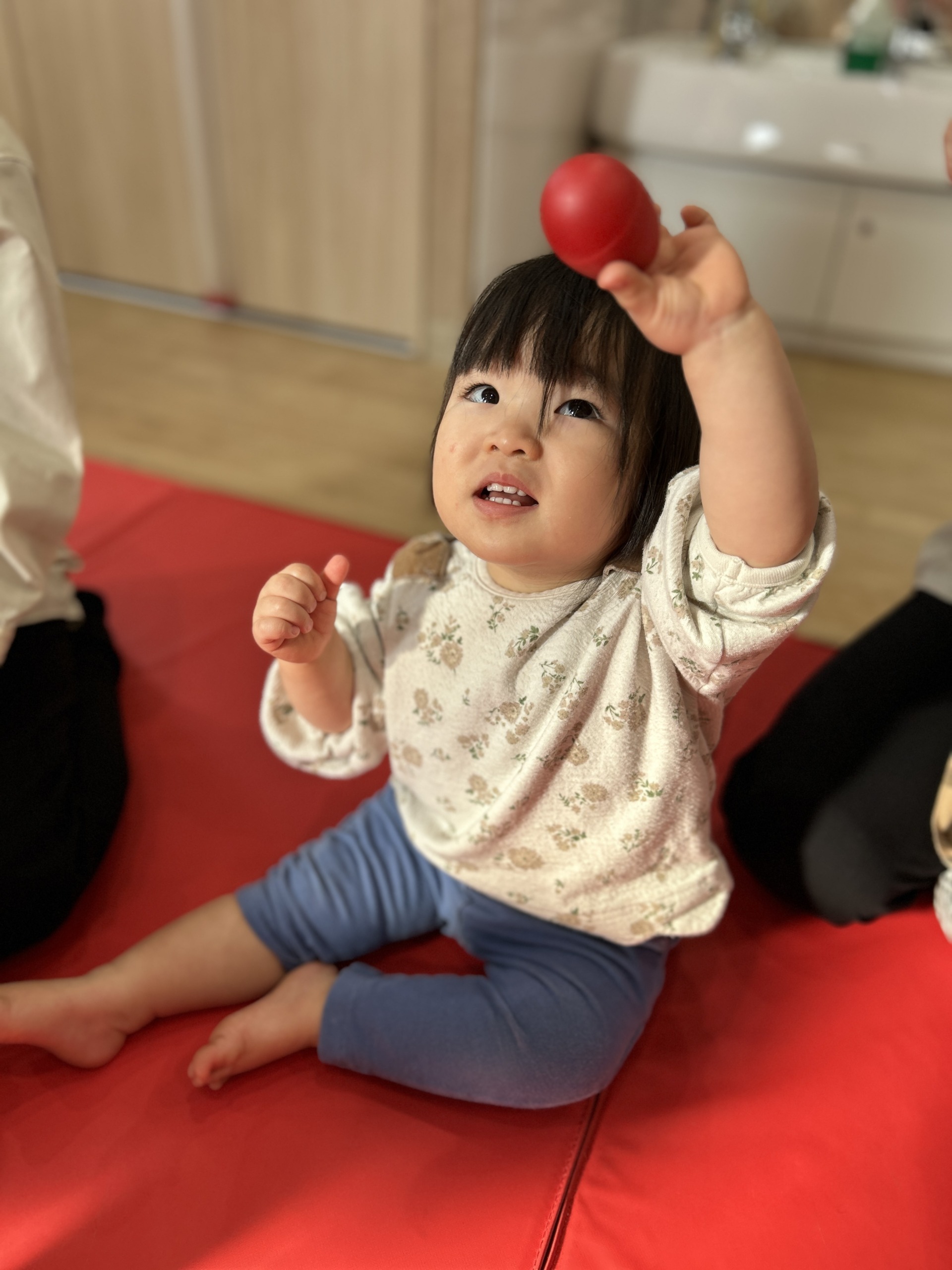 手を伸ばして高い場所で鳴らしました。理解力が育っています!