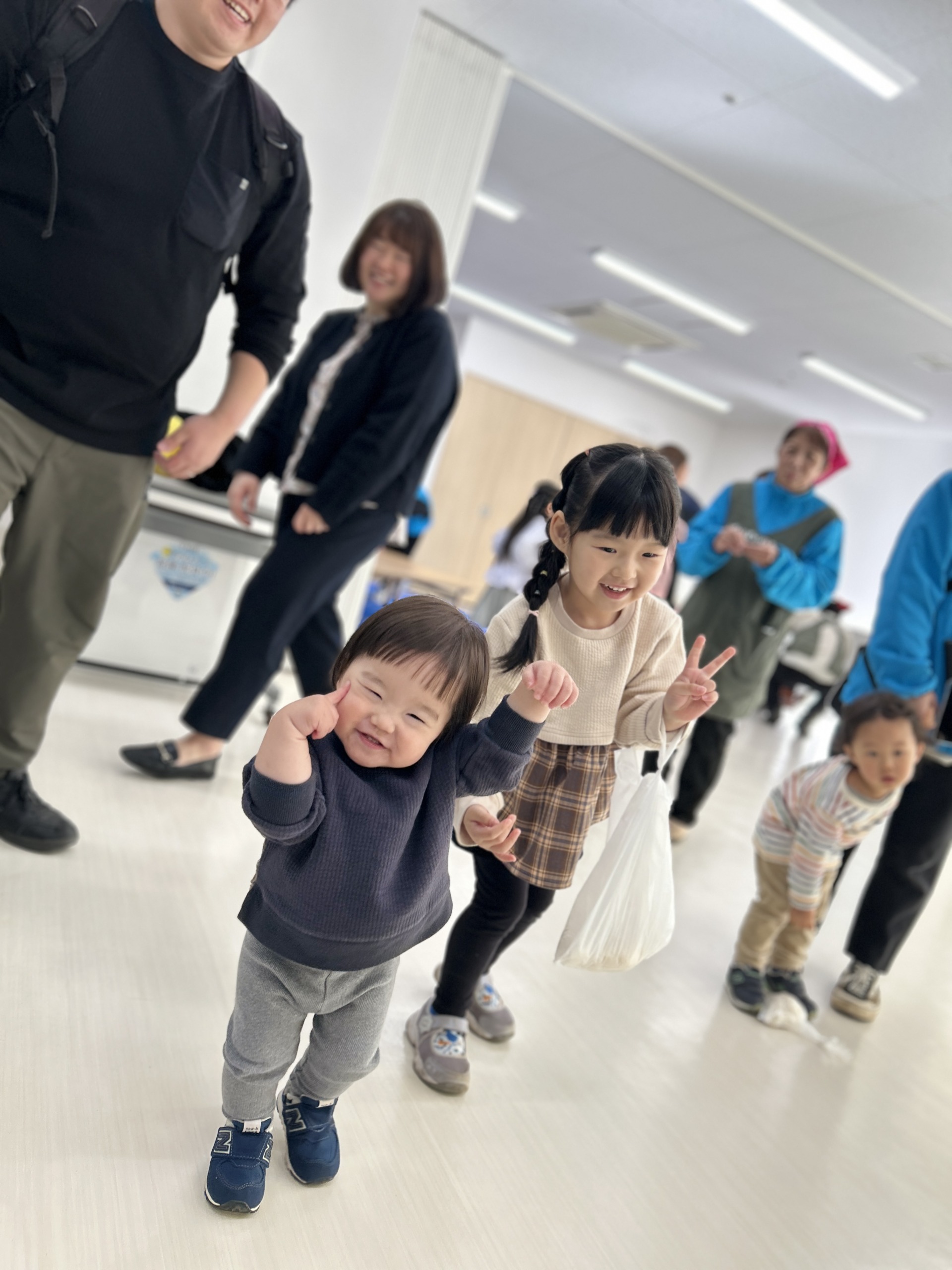 先生が「よいしょって言ってみようか」と声をかけると、「よいしょ!」と元気な掛け声が響いたよ。