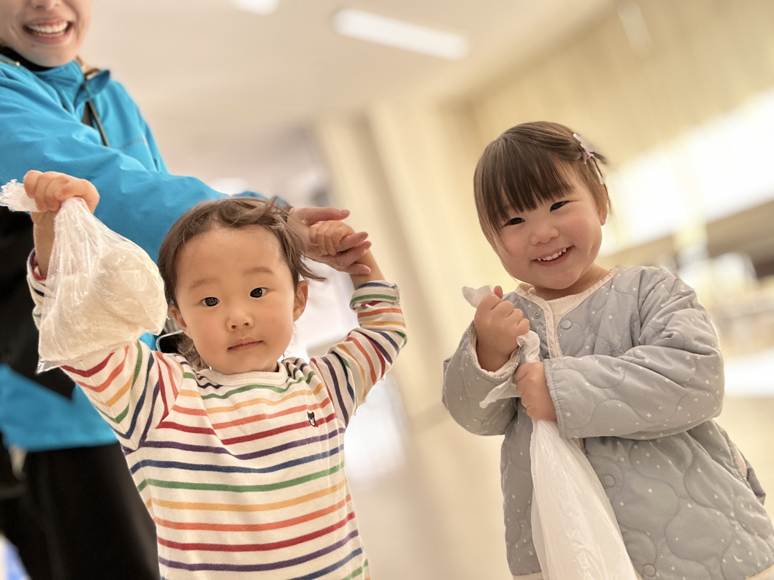 先生が「もちもちするね」と言うと、子どもも「もちもち〜」と感触を楽しんでいた。