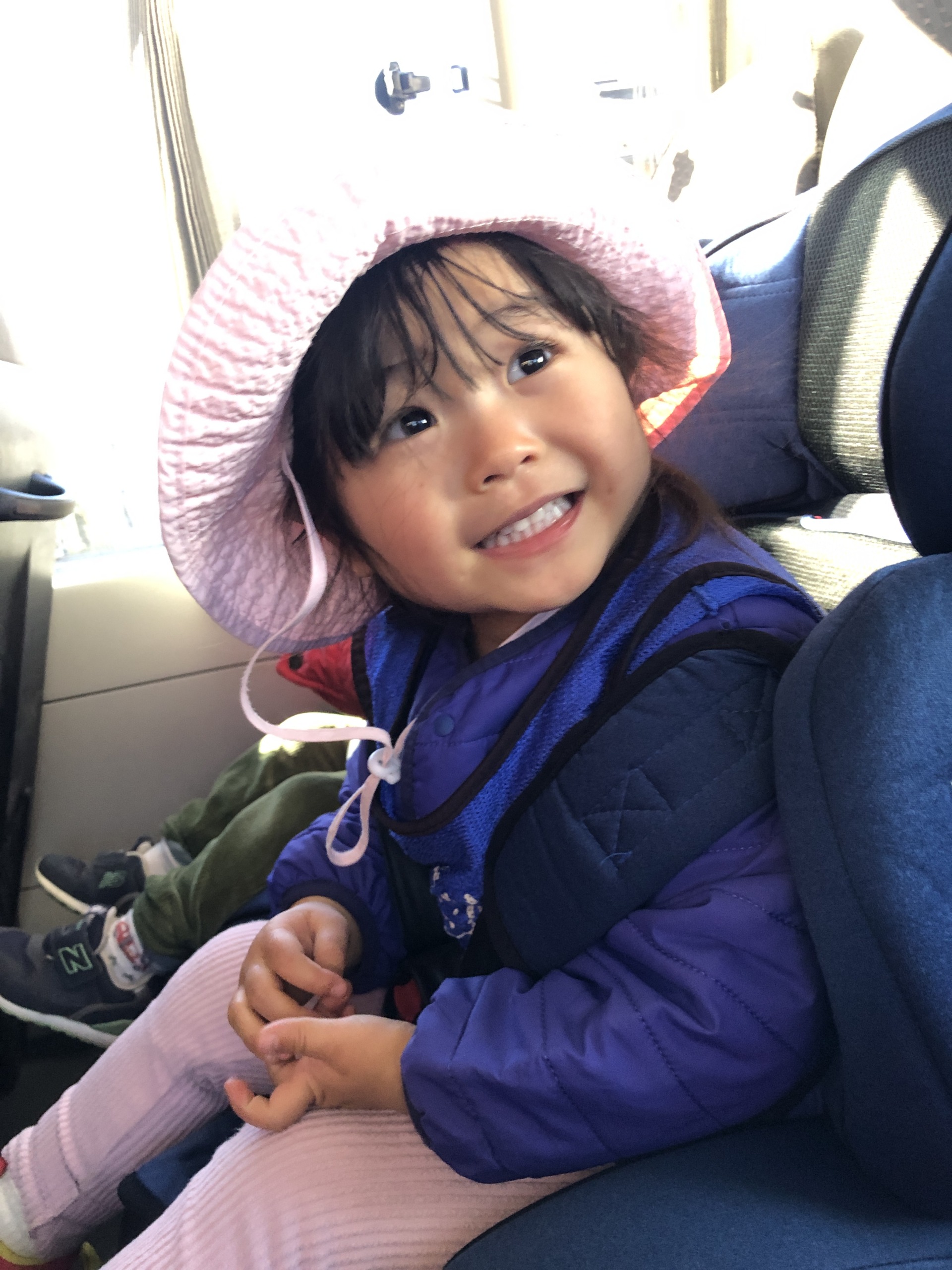 バスに乗ると、窓の外をじーっと見つめたり、揺れに身を任せてごきげんそうな表情を見せたり。