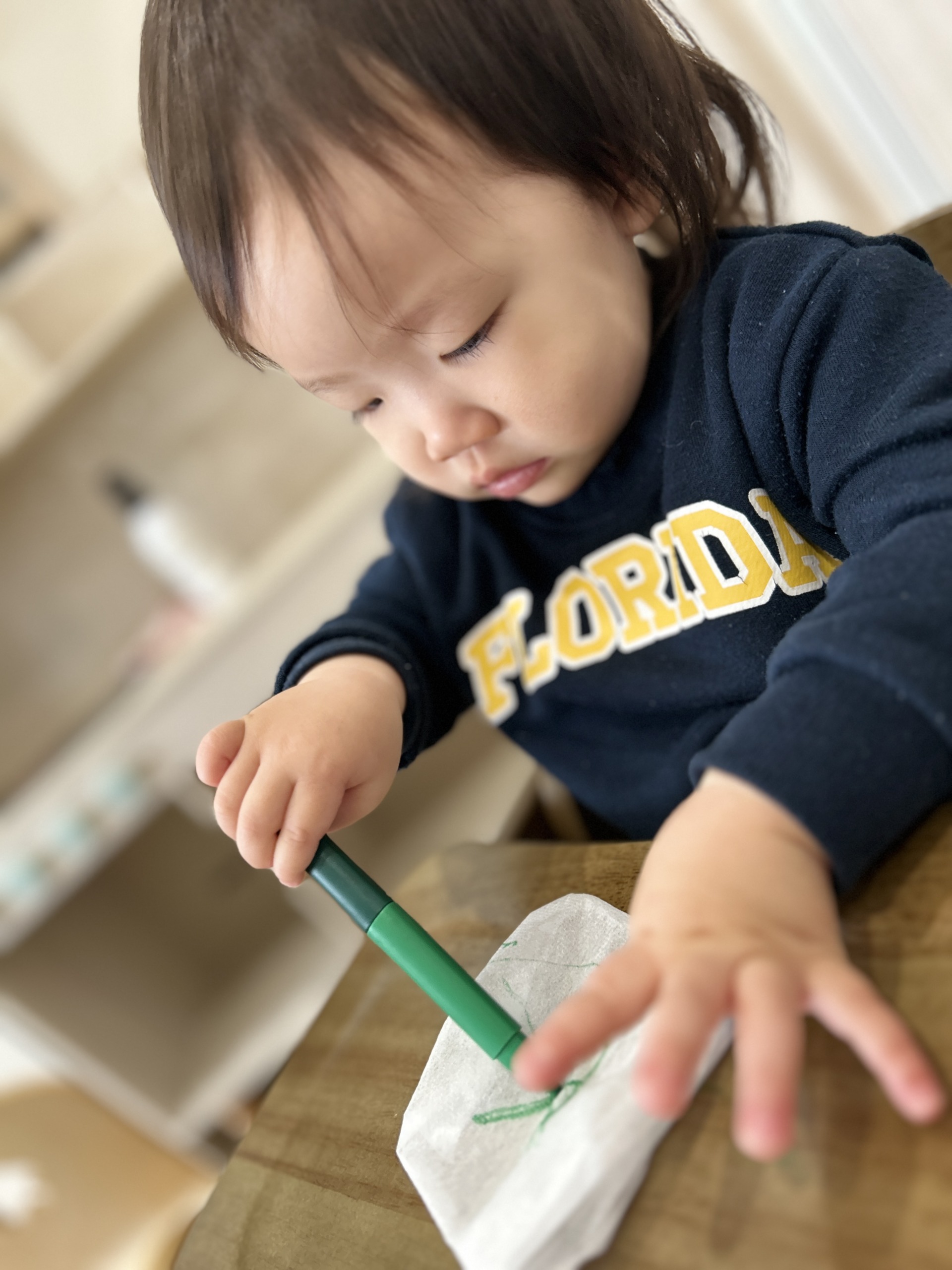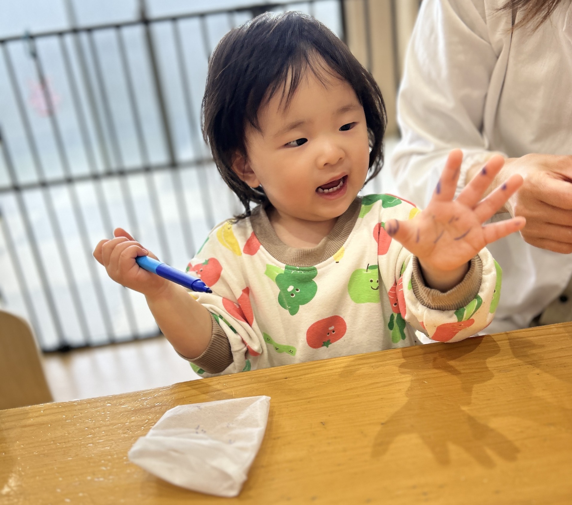 1歳児さんは、 自分でペンを持って 楽しく色塗りができたよ!