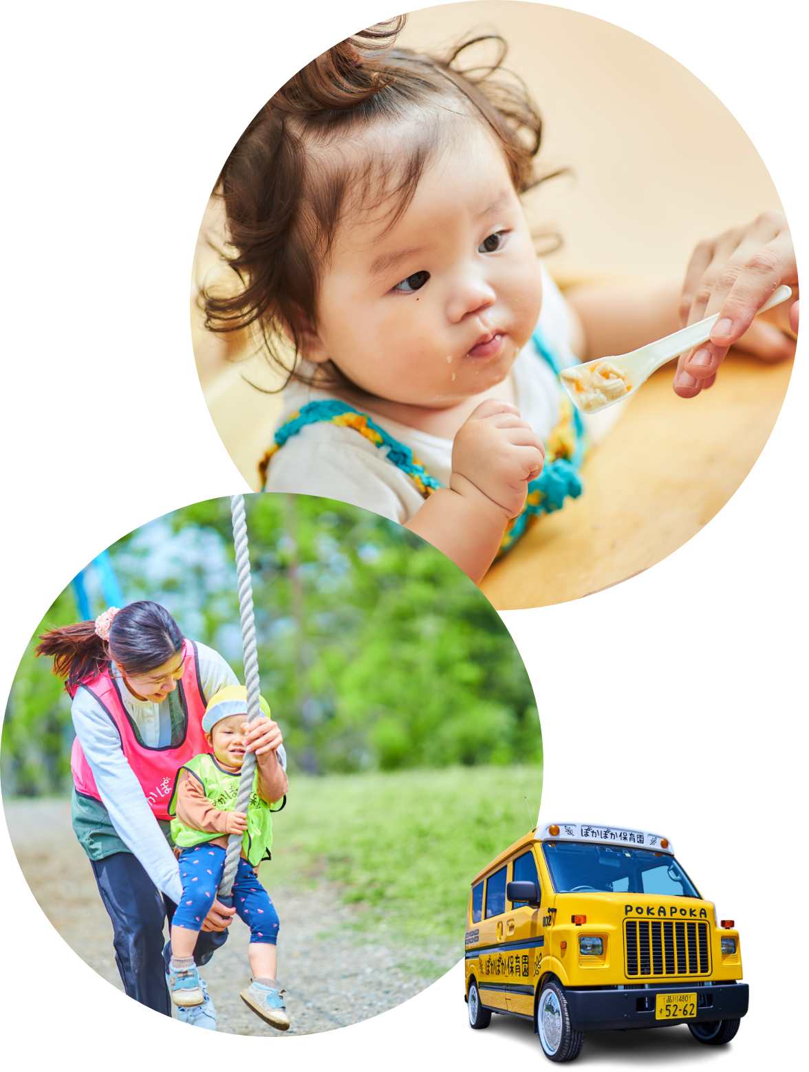 ・0歳児(生後57日後)〜1歳児 (分園) ・2歳児~5歳児 (本園) |