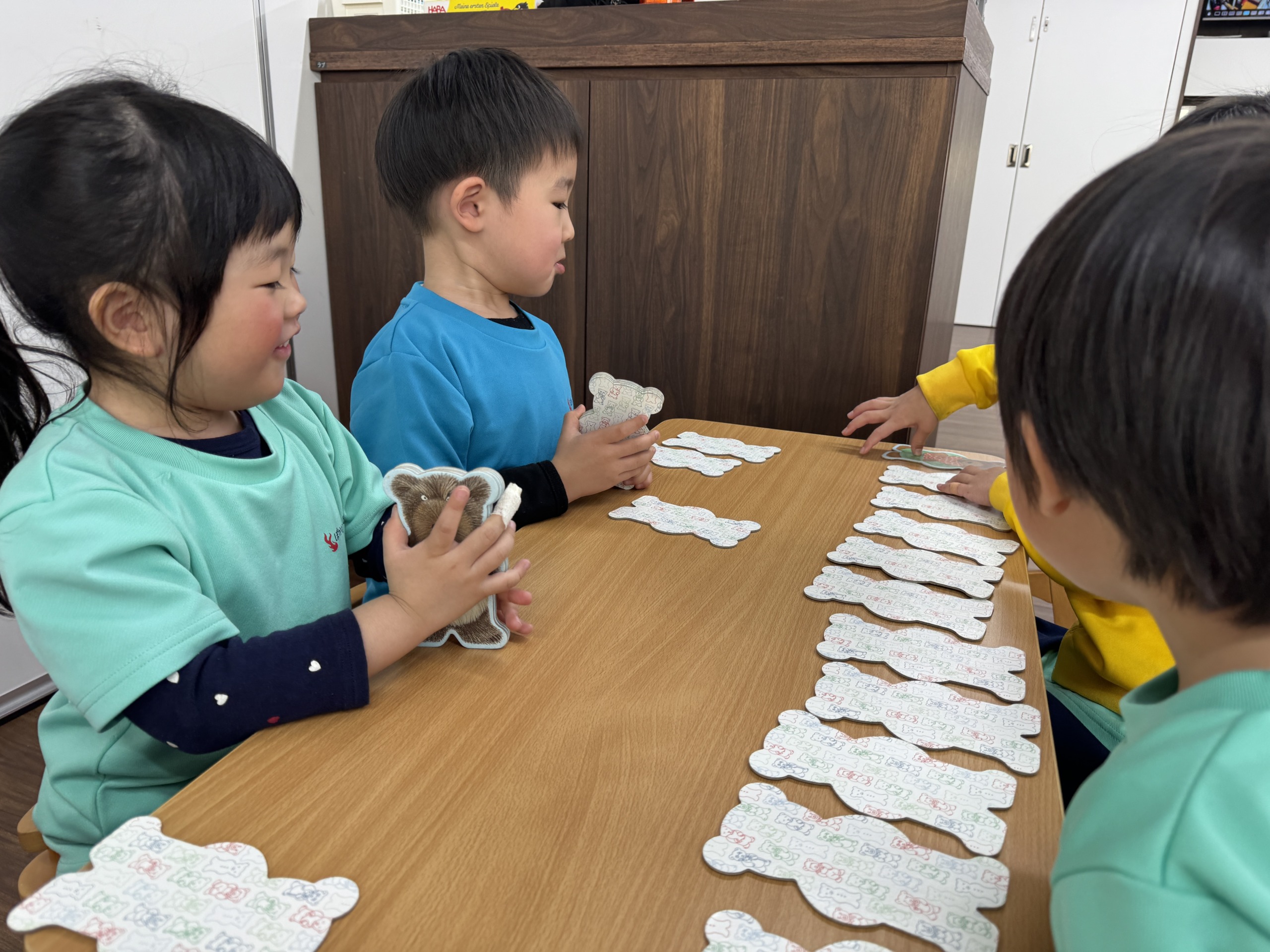 3歳児さんはアナログゲームに挑戦。カードを配ったり、順番を確認したり、「次は○○ちゃんだよ」と子ども同士で声を掛け合う姿も。