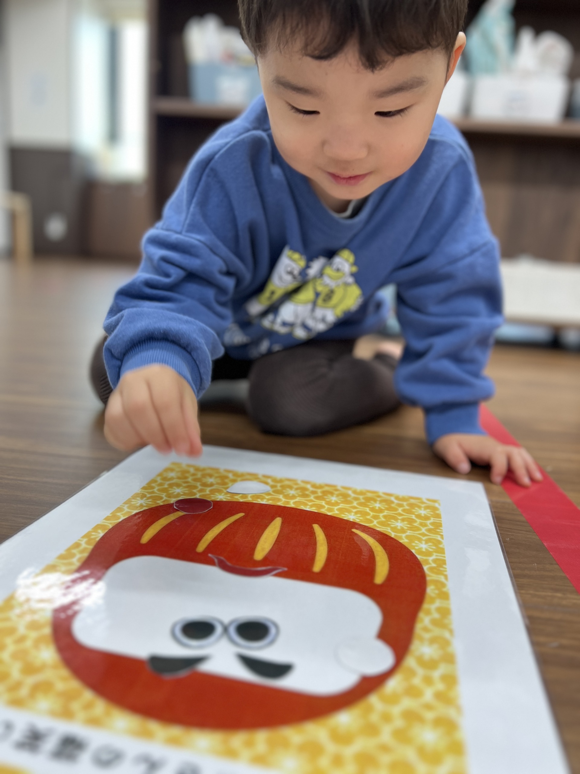 みんなで福笑いに挑戦!!どんなお顔が出来上がるかな~?