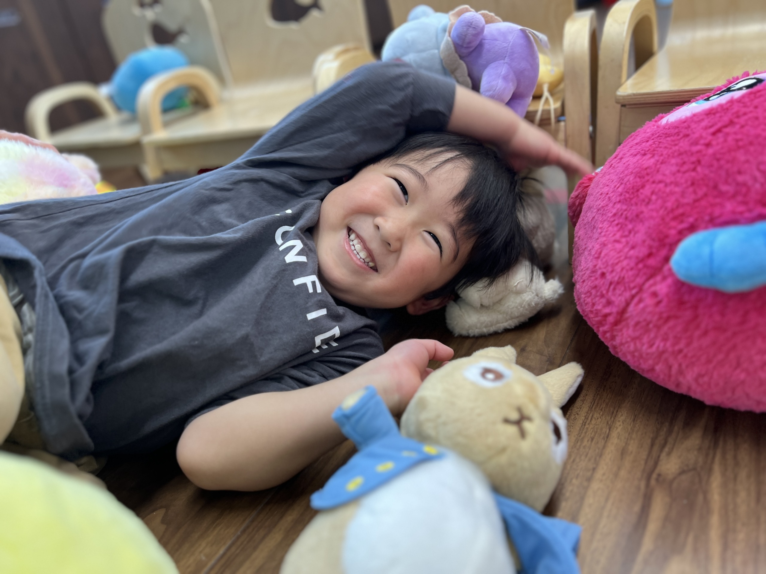 こちらは、ぬいぐるみになまえを付けて、お散歩したり、椅子に座って休憩して楽しい時間を過ごしました♡