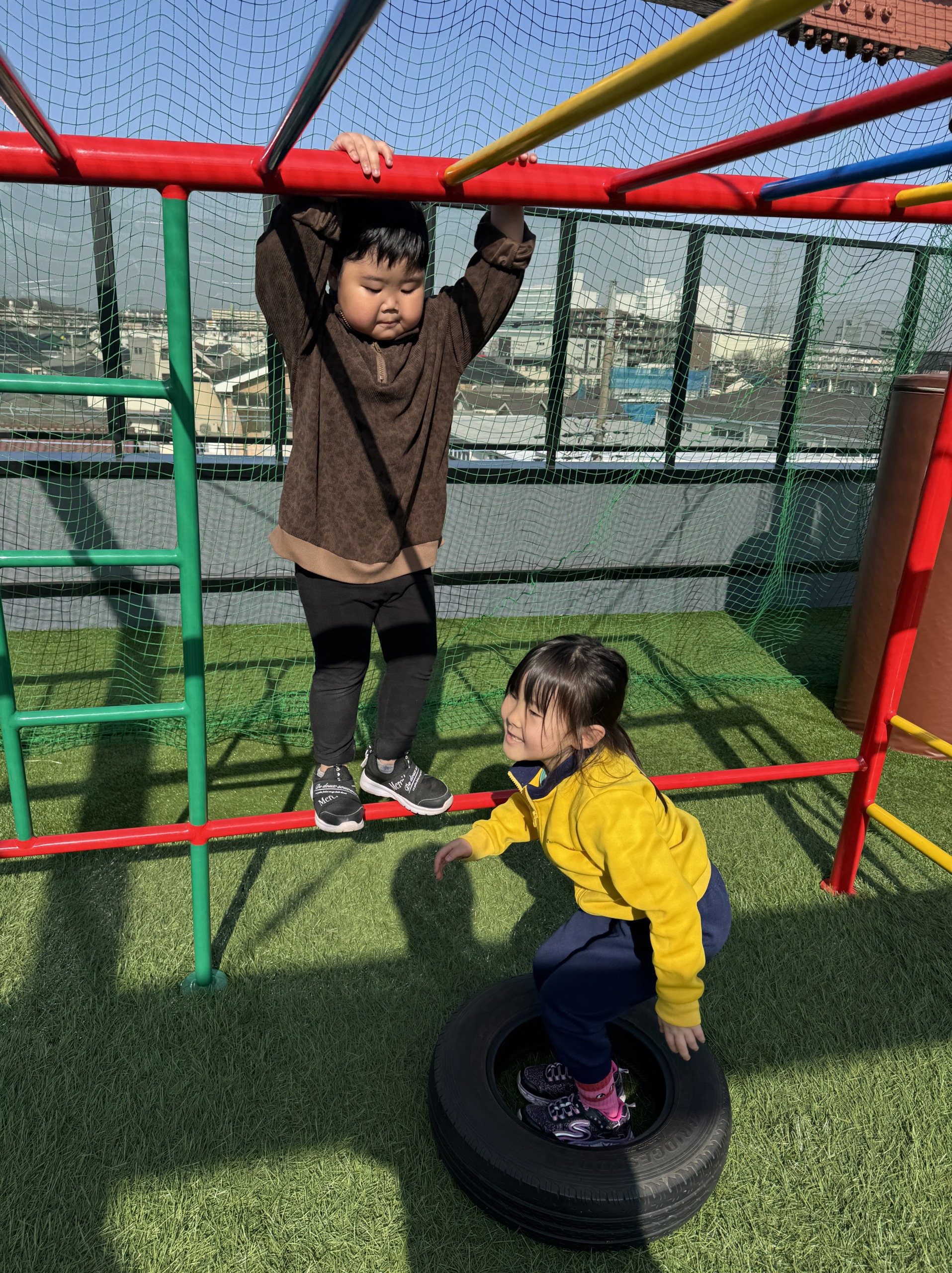 この様に屋上で気持ちの良い空気に触れて遊ぶのも大切な時間となります!