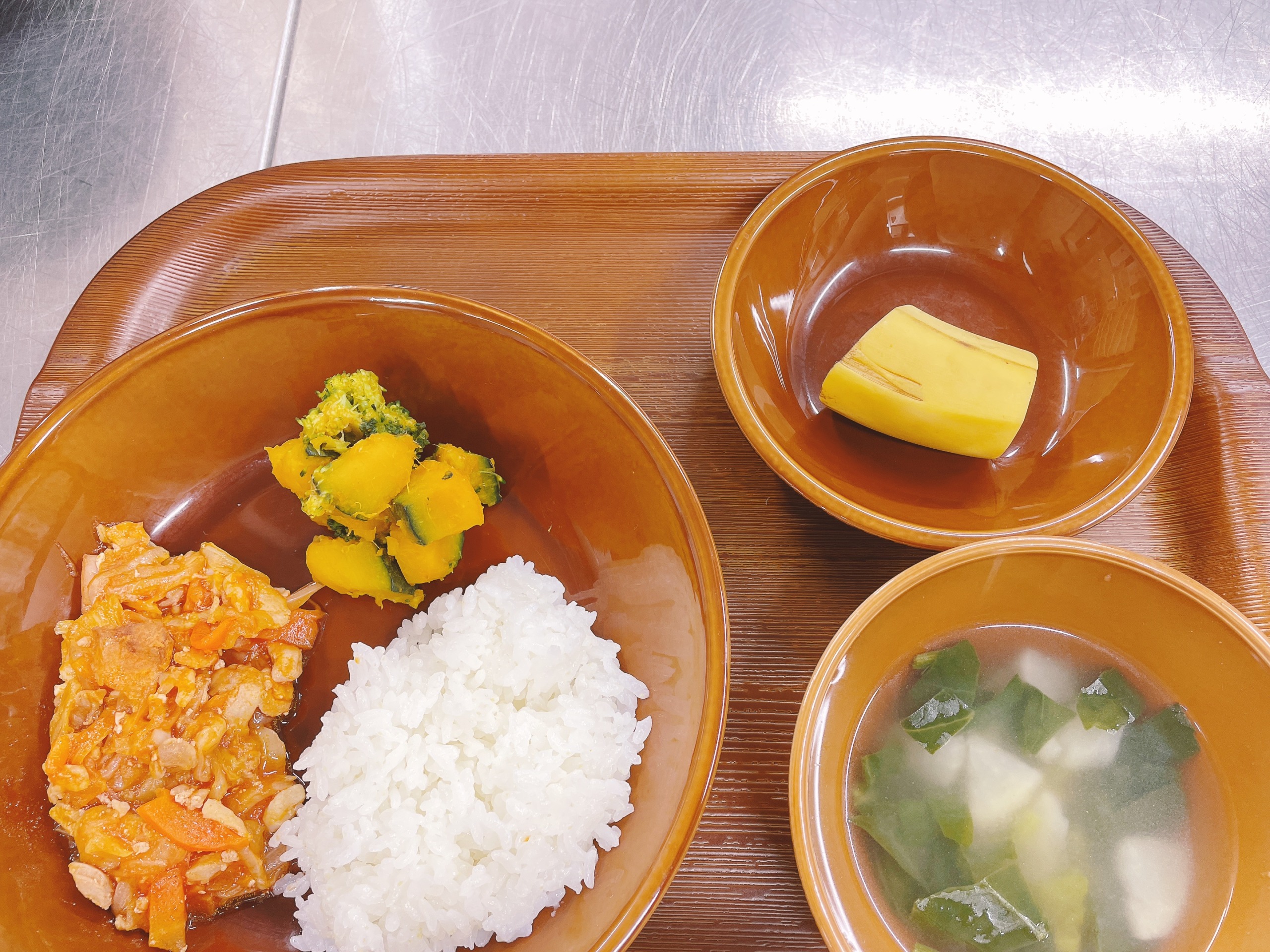 ほくほくのかぼちゃと小房に分け茹でたブロッコリーを、醤油と砂糖のシンプルな合わせ調味で和えました。素材の甘みを引き立てつつ色鮮やかに、「野菜なのにおいしい!」と野菜嫌いの子どももパクパク完食。食育の一環として、旬のかぼちゃを存分に味わいました。