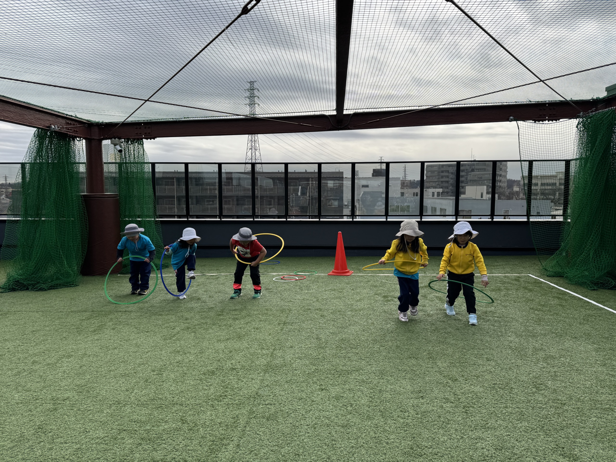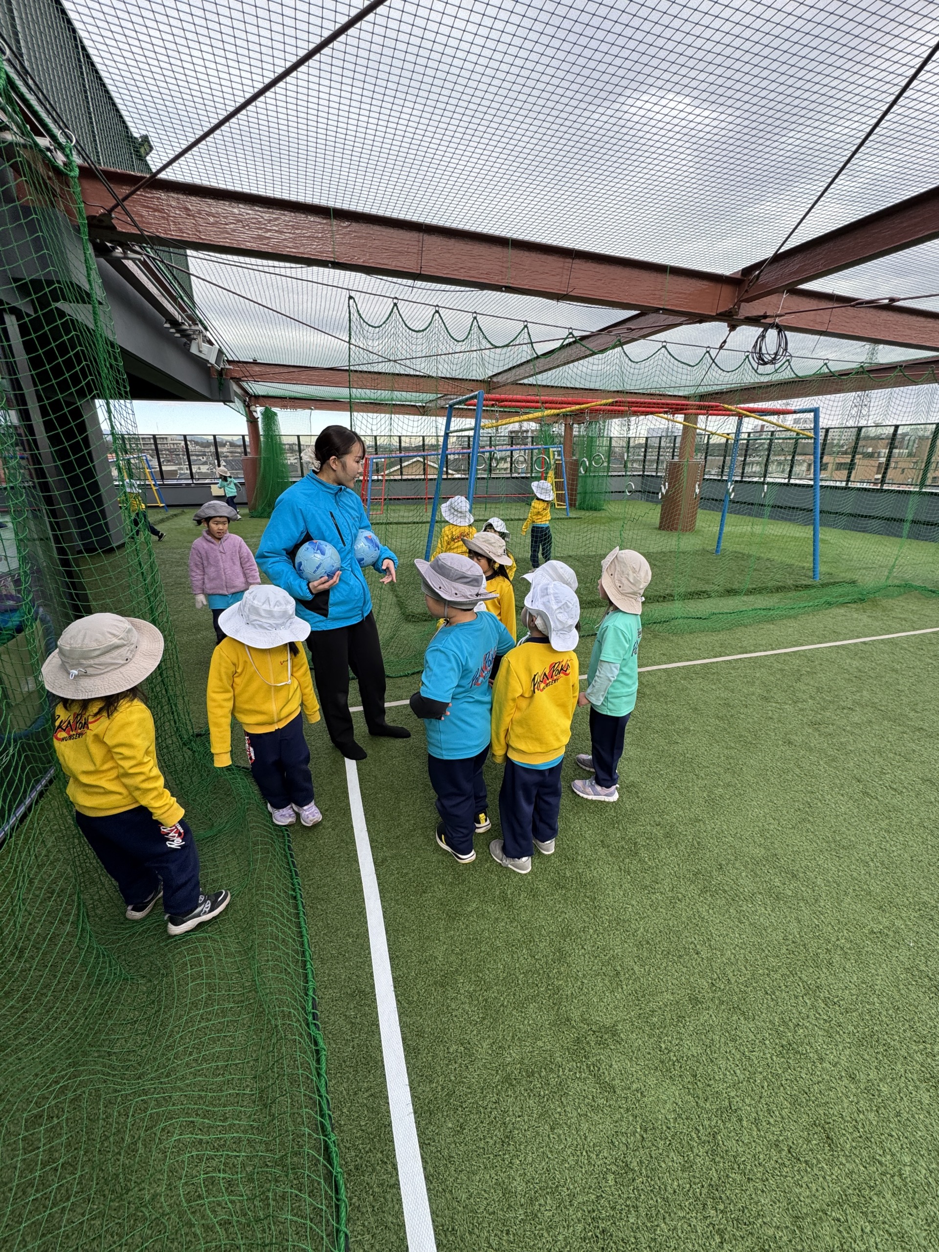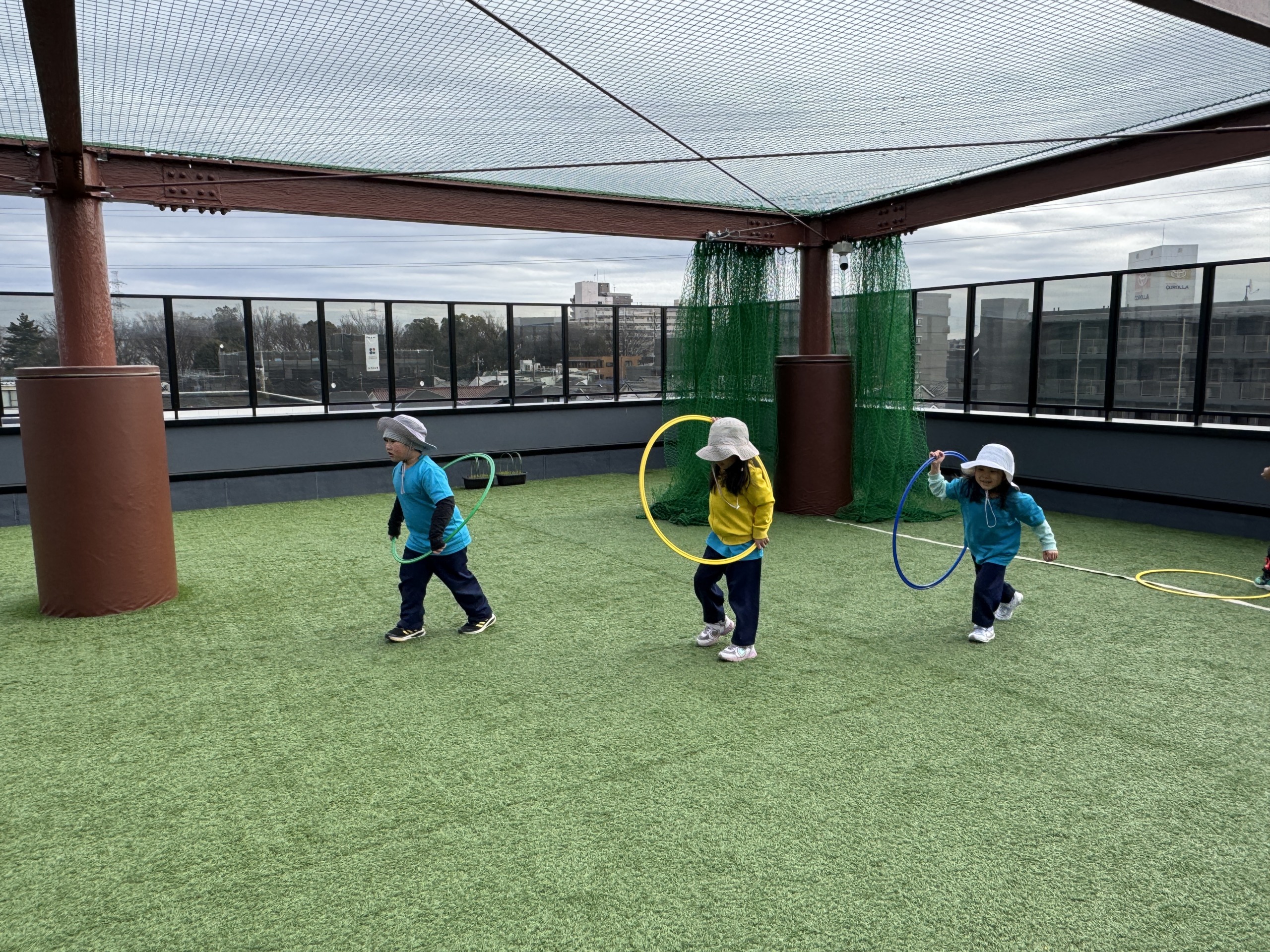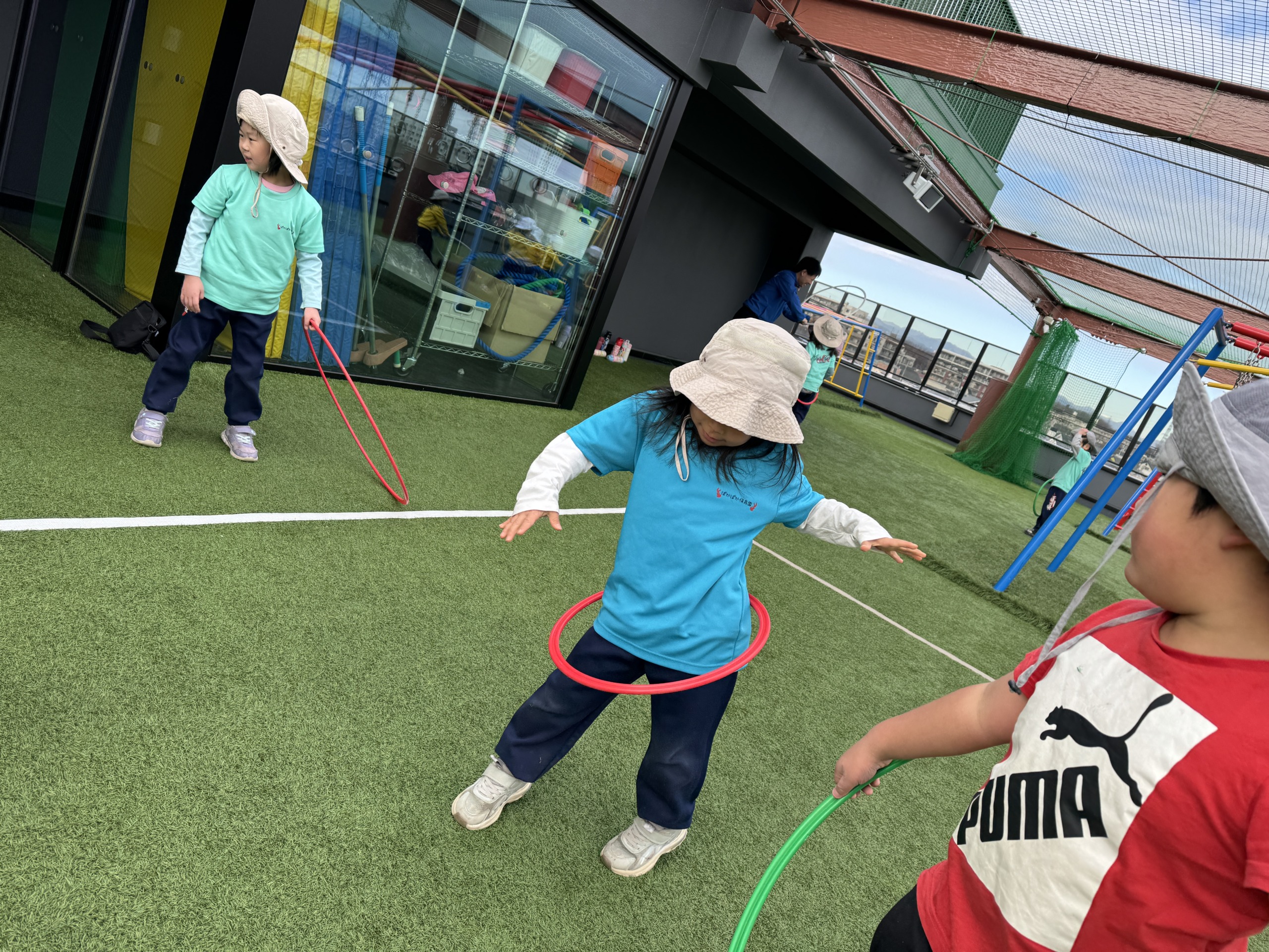 朝の会で公園と屋上どっちで遊びたいかみんなで決め、屋上で遊ぶ事に!今日は何してあそぼうかな?