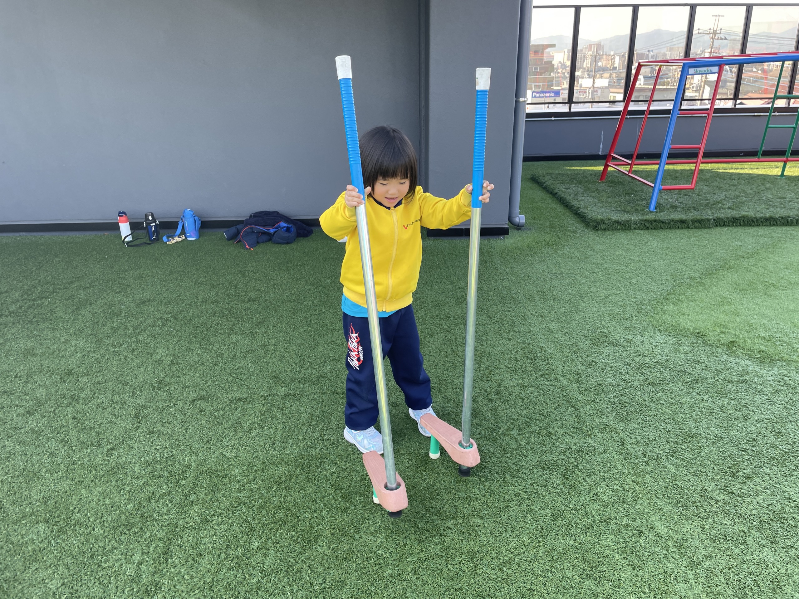 サイエンスの後は、年齢ごとに活動を分けて戸外遊びへ。3歳児はグレープシードの時間があったため、その前に屋上で体を動かしました。寒さに負けず走り回り、「まてまてー!」「つかまえた!」と元気な声が響きます。屋上という安心できる環境の中で、思いきり体を動かし、心も体もぽかぽかになりました。